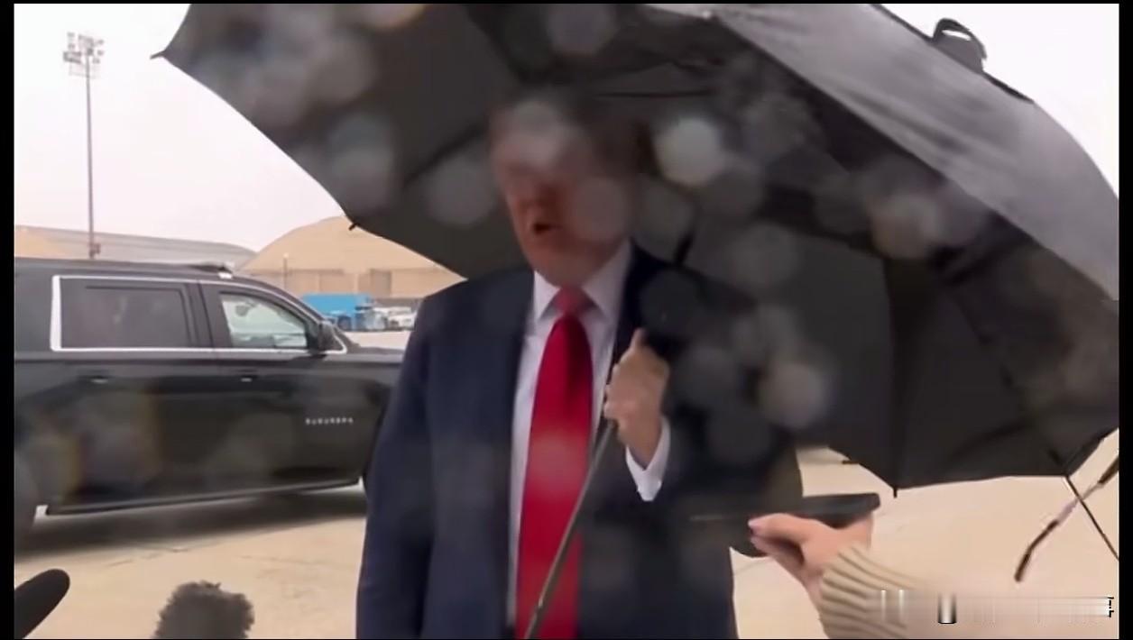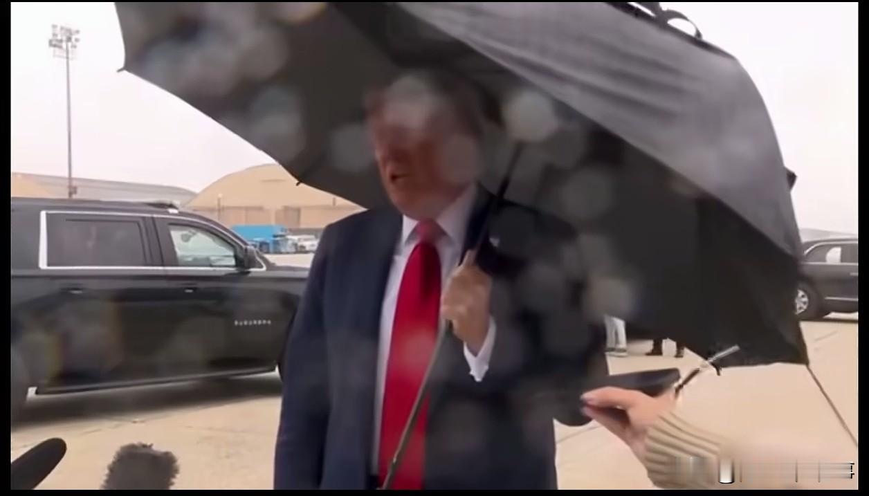 一把破伞,像极了美国?! 13号特朗普去白宫路上,打着一把伞骨抽出来的破伞,在风雨中凌乱着…走到记者跟前接受采访! 我想如果谁拿他的破伞说事,他多半会给出川普式的回答: 没有人比我更懂怎么撑一把破伞[捂脸]