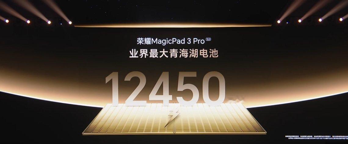 荣耀MagicPad3Pro采用业界最大青海湖电池12450 mAh