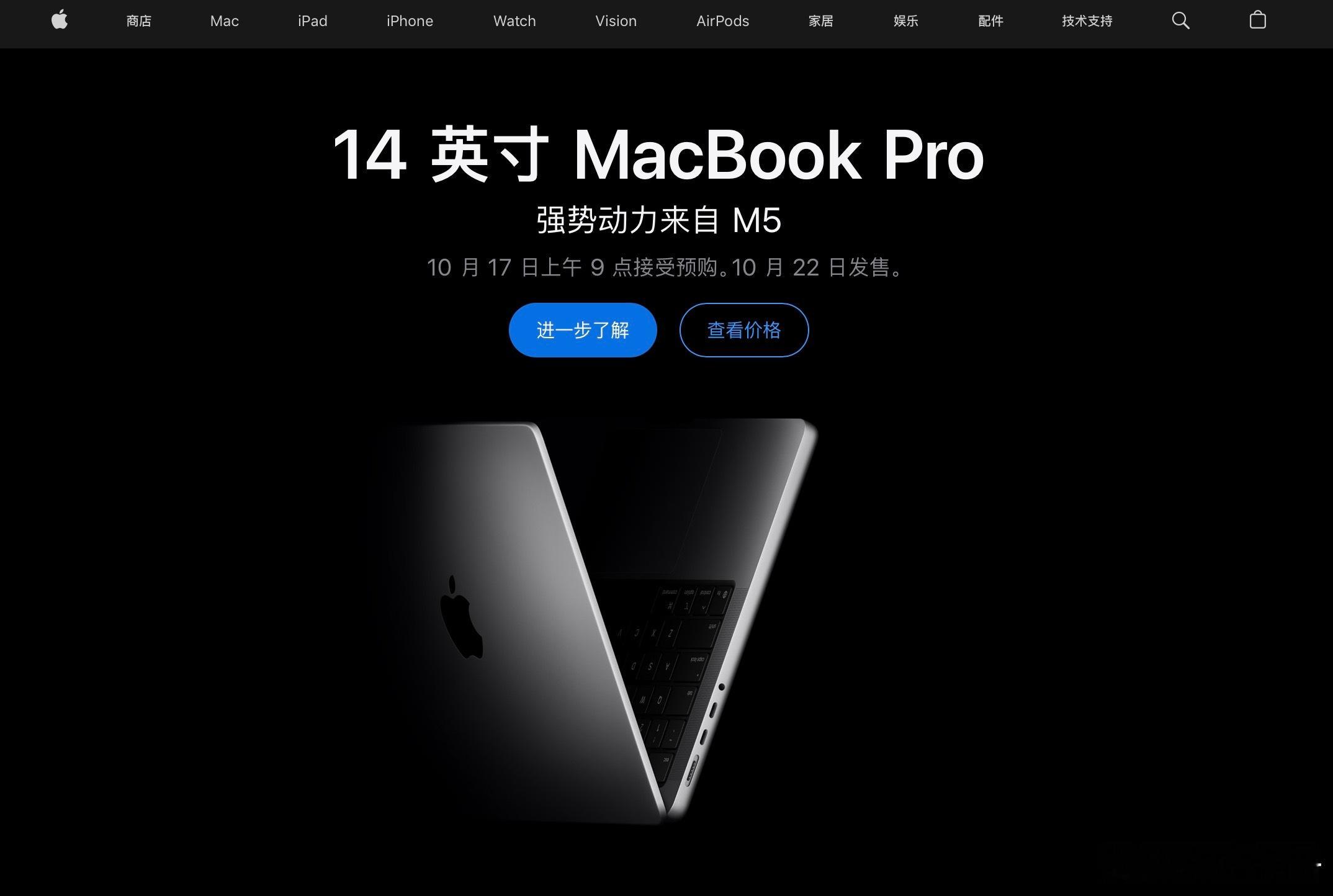 苹果直接就上架了新M5芯片的iPad Pro和Macbook Pro以及Vision Pro