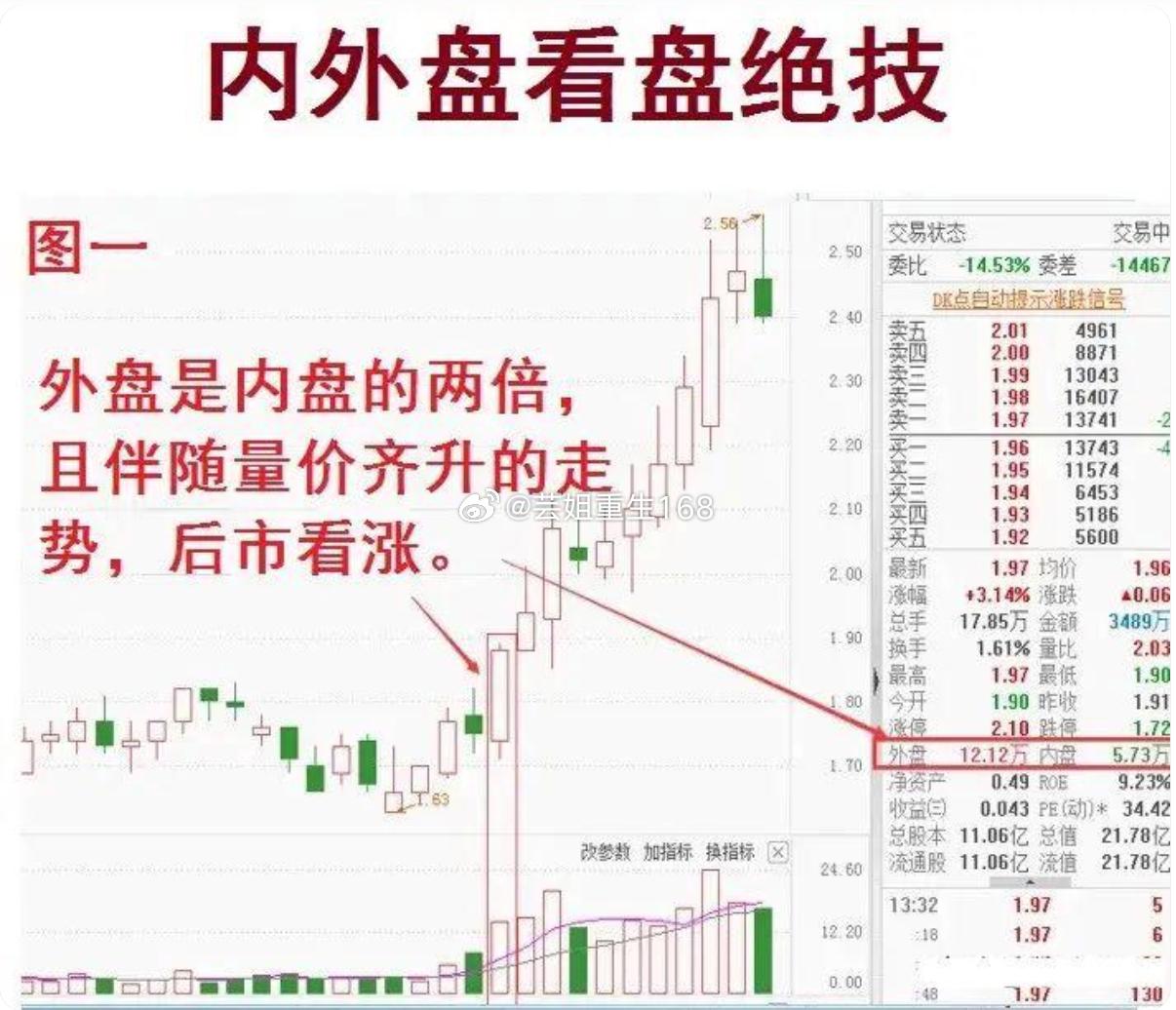 1. 庄家其实能靠内外盘数量“骗人”,所以咱们用的时候,得结合股价在分时图里的低位、中位、高位,还有它占当天总成交量的比例来看。别一看外盘大就觉得会涨,内盘大就觉得会跌,得综合判断。