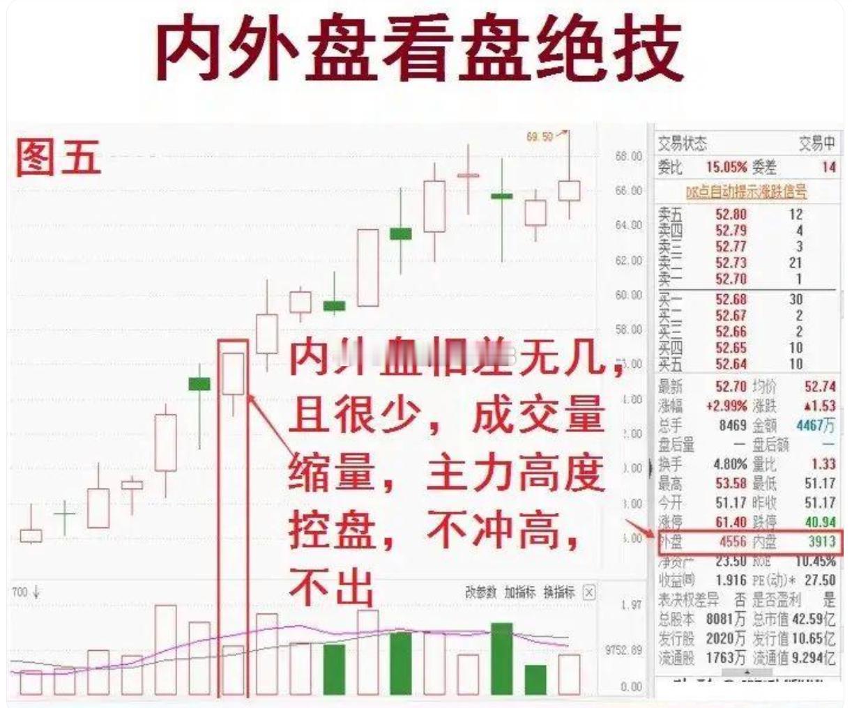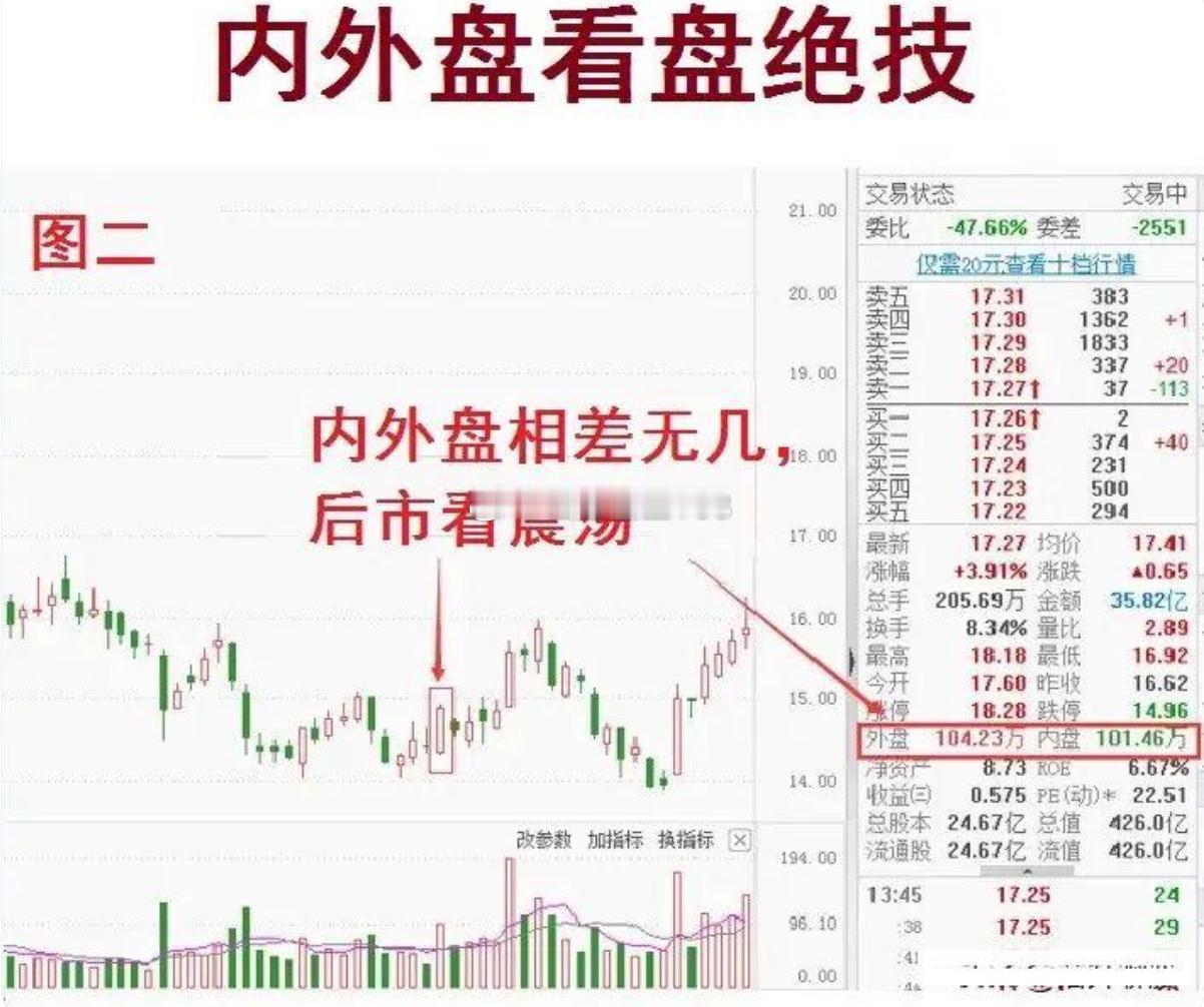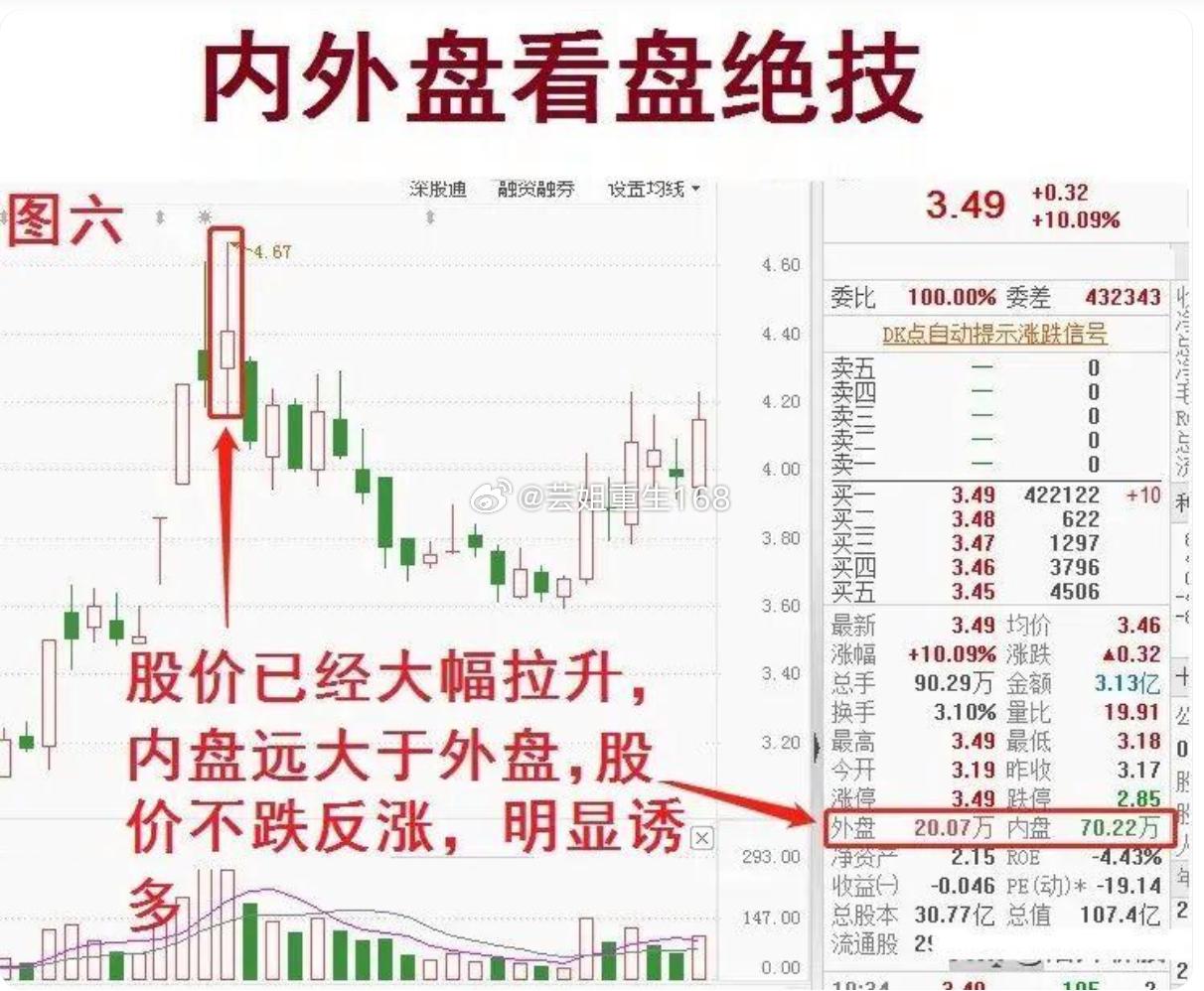 但千万别光看内外盘就下判断!一定要结合股价在低位、中位还是高位,还有当天的总成交量来看。因为不是啥时候内外盘都准——有时候外盘看着挺大,股价却不涨;有时候内盘看着多,股价也没跌,这都是常有的事。