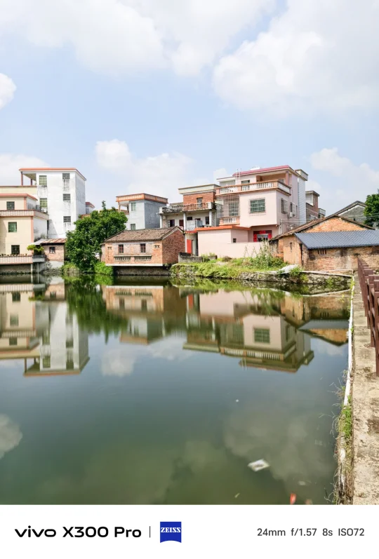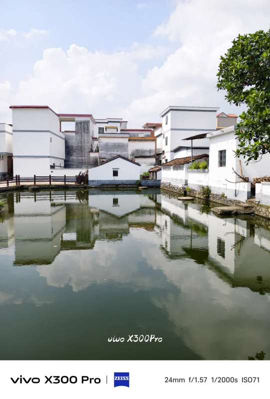 谁懂啊!在云浮还藏着一座“建筑混血”古村,徽派马头墙撞入岭南镬耳群,青砖黛瓦映着池塘波光,不仅有岭南古建筑特色,还有江浙水乡风味,用vivo X300 Pro随手拍都是建筑大片 . 始建于明永乐二年的水东村,是北宋理学家程颢后裔的聚居地,588座明清建筑按八卦布局铺开,被誉为“岭南理学第一村”。最绝的是建筑融合术——寿庵祠的月牙形封火墙是徽派印记,程氏大宗祠的镬耳山墙藏着广府密码,石雕木雕上的神兽纹样在阳光下纹路清晰,随处可见的池塘和大榕树更容易让人记住这个岭南水乡! . 📸摄影器材:vivo X300 Pro 📍位置:广东省云浮市腰古镇水东村 . ✨ 四大出片点亲测: 1. 程氏大宗祠:380年大榕树苍劲挺拔,用超广角聚焦树干纹理,拍出延伸感,“镇祠之宝”的古朴感瞬间凸显(图15) 2. 池塘榕树边:微风袭来,树随影动,使用动态照片模式记录树影与水波的微妙变化(图7-10) 3. 明徵镬耳墙:10倍长焦捕捉砖墙斑驳感,2亿像素镜头拍出每一块墙砖的古朴质感(图5) 4. 池塘居民建筑群:用X300 Pro的“行云流水”慢门拍摄,洁白的墙面在水中的倒影与天空的云彩融为一体(图1-4) 两亿像素超清晰,旅拍何必带相机,vivo X300 Pro的风光镜头里,马头墙的棱角、木雕的细节、古村的烟火气全都装得下。来这走青石板路,感受理学古村的600年时光吧~ .