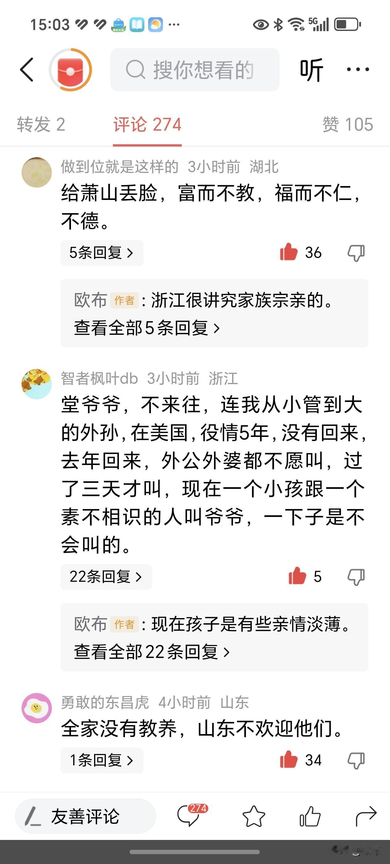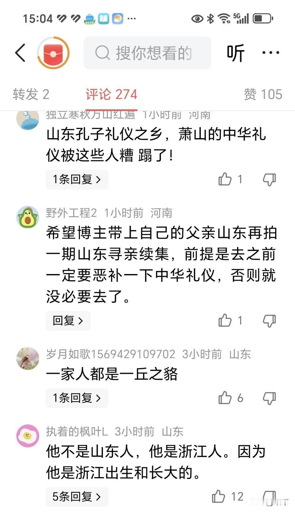 百万博主山东寻亲素养翻车,成全网反面教材,全民掀起礼仪热,礼仪之乡山东爆火,浙江无辜躺枪。 山东寻亲翻车博主被吐槽没教养,他一句南北差异又把没教养的锅甩给浙江。 据我所知,浙江人也是非常注重宗亲的,并且也非常注重礼节,你可别丢完故乡的人又丢家乡的人了,山东也好,浙江也好,像你这样的人都不多。 其实,你和你爹不认识宗亲这都不是致命的问题,大不了就是亲情淡薄。现在,不走亲戚的人很多,因为现在人口流动大,亲戚都天南海北的,时间一长,生活环境不同造就了共同语言少,下一辈不认识也正常。 但你的没教养表现在不懂礼貌,对人尊重度不够。这些可和大环境没有关系,这是一个人最基本的素质。 比如,你应该知道你的儿子应该把你的叔叔叫爷爷,你叔叔拉着你喊回家的时候,你就应该把老婆孩子喊过来正式介绍给叔叔,让他们叫叔叔爷爷,而不是问叔叔应该叫什么。你当时的做法真是大逆不道,你的老婆孩子面对叔叔热情伸出的手那种发愣的劲,就说明他们在礼仪这一块严重缺乏。 信大伙的话,相信群众的眼睛,咱们国家是礼仪之邦,一家人没事的时候,关起门来学一学咱们的传统文化,社交礼仪,你作为一个大网红,你丢的不是你自己的脸,而是全国人民的脸。 山东人口碑
