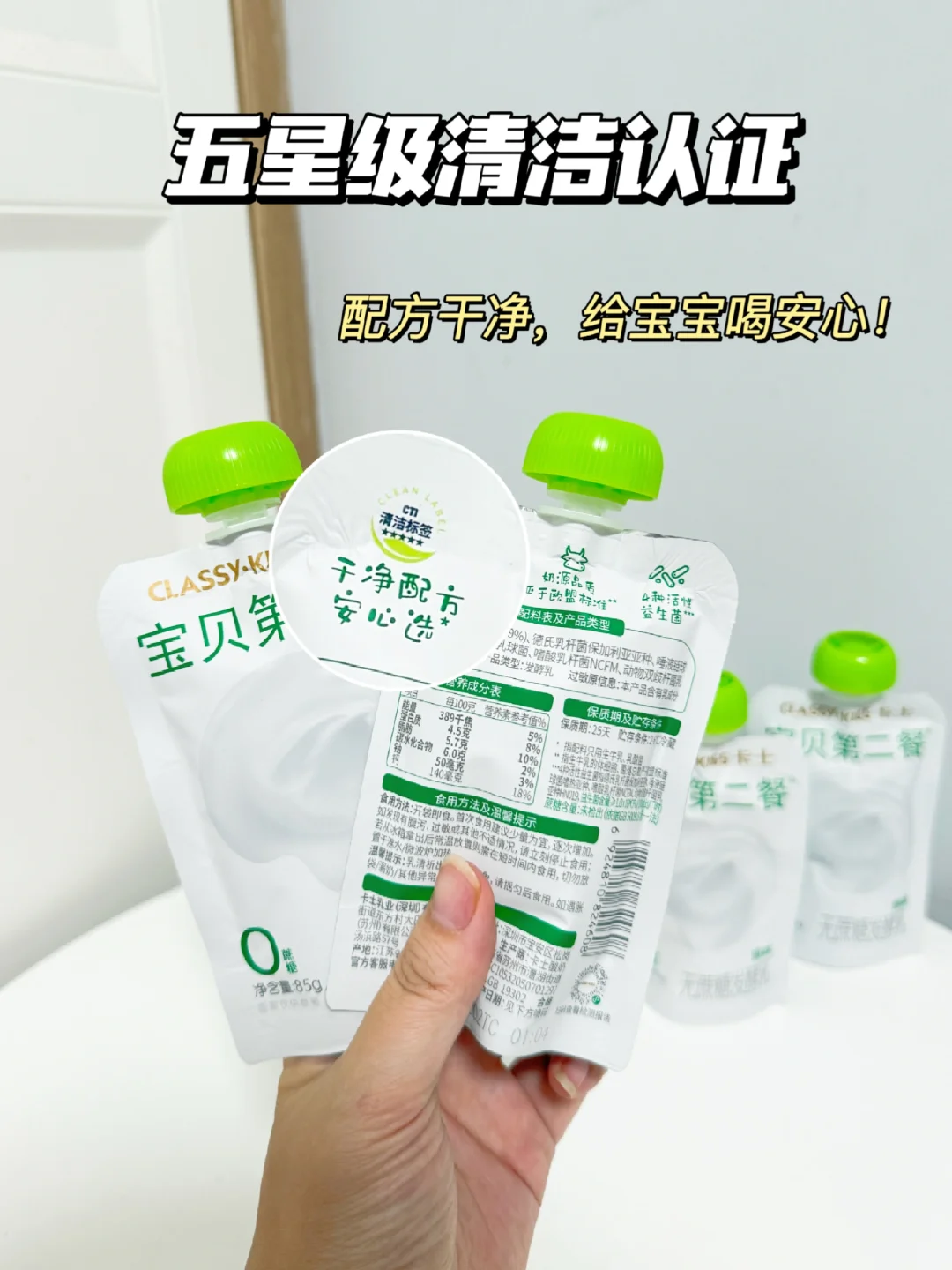 宝贝第二餐酸奶是有五星清洁证书的干净配方,没有任何添加,给宝宝喝也安心!