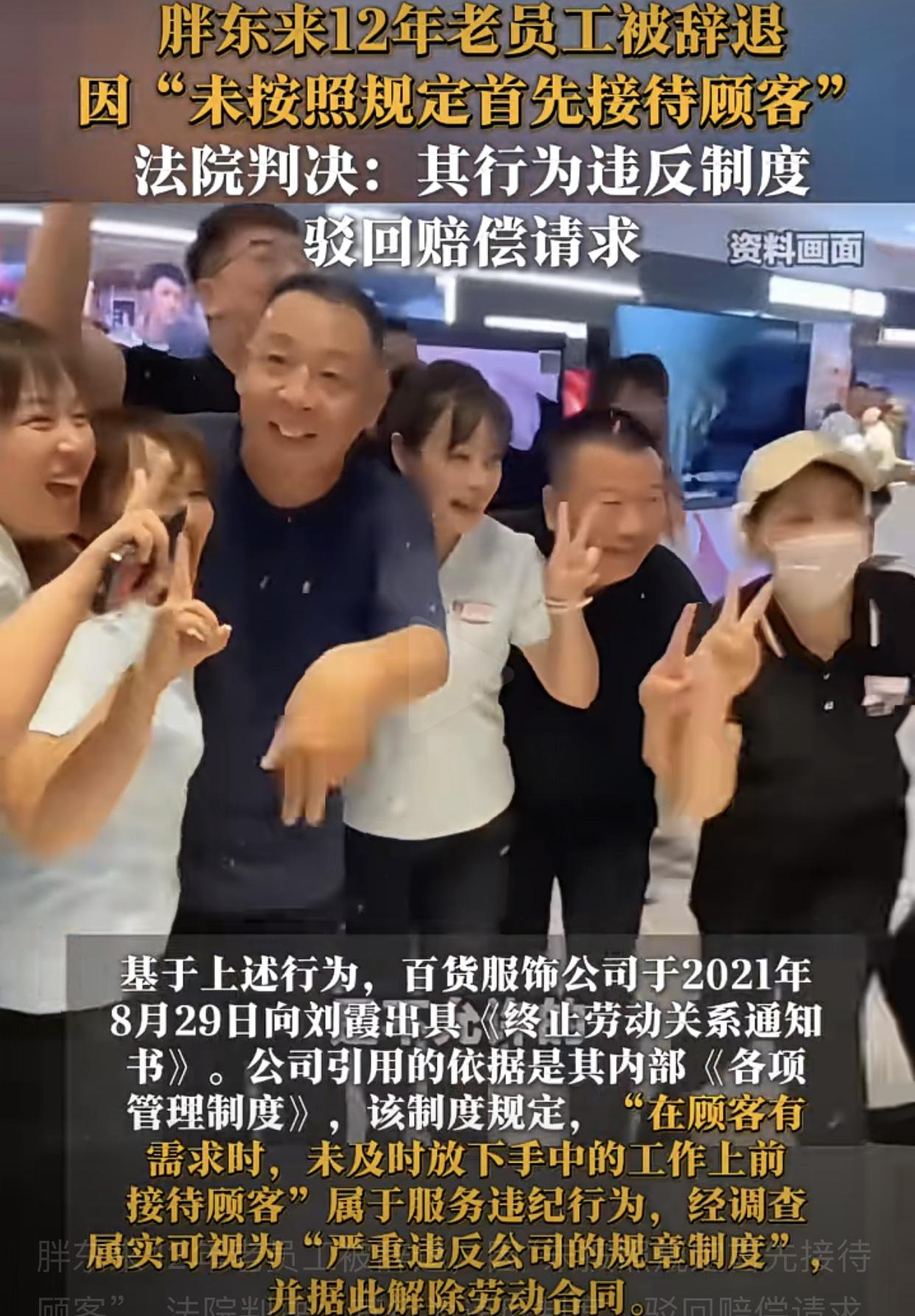 不是说胖东来把员工当亲人吗? 一名在胖东来干了12年女员工,就因为整理货架,没有及时招呼顾客,就给解聘!理由是:“你可以业绩不好,但在工作中决不能怠慢顾客!” 这件劳动纠纷事件是发生在21年,被解雇女员工当时要求胖东来赔偿12年的损失费。4年后,法院还是维持了原判 。 仔细看了一下,法院都二审驳回赔偿请求了。也就是说,辞退这名老员工,胖东来没出一分钱。 (来源:第一现场) 胖东来不是承诺可以给刑满释放的人改过自新的机会吗?这名干了12年的老员工只犯了一次错,而且还是一件很小的事情,直接无赔偿辞退,原来于老板格局就这么大一点。