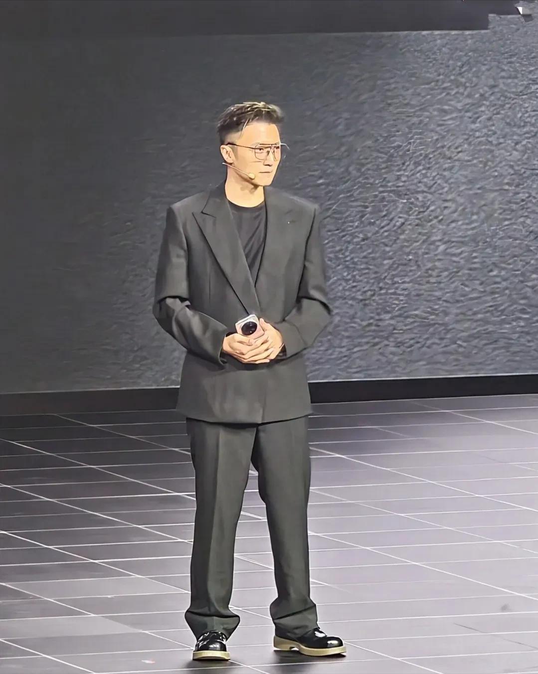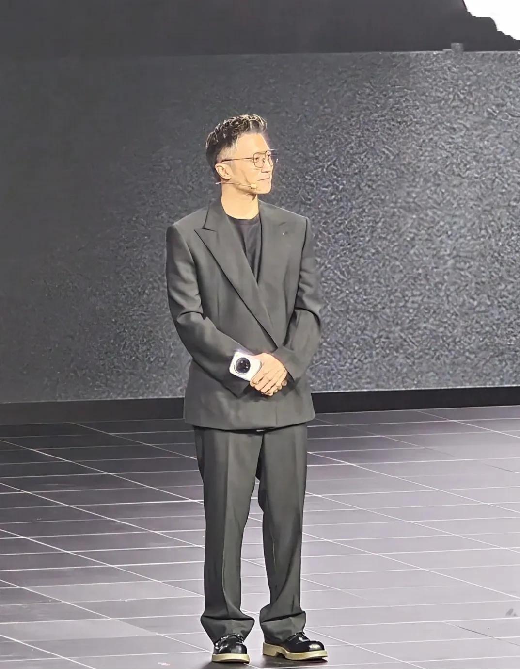 原来,也有谢霆锋驾驭不了的衣服,那就是西装! 谢霆锋出席荣耀新款手机发布会,戴着眼镜,穿着一套黑色的西装,脚上穿着一双亮锃锃的皮鞋。 远一看,还以为哪个房产中介走错了片场,也不知道这西装,是跟哪个壮汉借的,肩线垮到胳膊肘,裤腿堆在鞋面上,皱成一团麻,活像偷穿老爸衣服的高中生。 关键是身高,硬是被压成五五分,皮鞋擦再亮,也救不了这身“流浪总裁”气质。 更绝的是,眼镜配西装,本该是斯文败类设定,结果却穿出了,连夜加班三天,困到睁不开眼的程序员既视感。 吴彦祖穿oversize西装,是慵懒高级,谢霆锋这身,却像快递盒裹身。 关键差在剪裁和面料,这外套肘部褶皱,明显是胸围不足,强行撑开的。 (每天更新,点进主页我们一起看世界!喜欢文章的可以帮忙点个关注点个赞~) 腰线还卡在胯骨上,活生生把倒三角身材,切成水桶,这真的全靠颜值在撑了,大家怎么看?