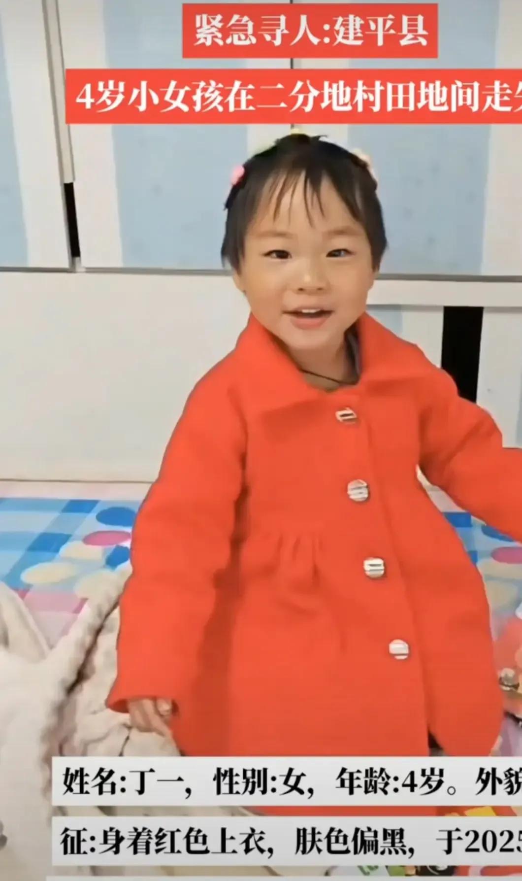 揪心,4岁女孩在车里睡了一觉就不见了! 近日,辽宁,农民们都在忙着秋收,一小女孩在家里的面包车上睡觉,爷爷奶奶忙着收庄稼。 20多分钟后,奶奶过来查看,看到的一幕让她惊出一身冷汗。 原来,原本睡觉的小孙女不见了,车门上了锁,车窗被打开了,一种不祥的预感涌上老人都心头。 大家都猜测,孩子可能自己爬出来走失,或者被人抱走。 孩子的家属说,小女孩叫丁一,今年4岁,身穿红色上衣,皮肤偏黑,性格胆小,说话声音很小,走失时穿着红色上衣。 太揪心了,辽宁现在已经很冷了,天寒地冻的,孩子这是去了哪里啊!肯定是又冷又饿又害怕。 希望孩子能被好心人收留,并把她送回家人身边。 如果被人抱走,女孩就危险了! 希望大家都互相转发,来帮帮这一家人,希望孩子能早日回家,和家人团聚。 也提醒大家,任何时候,不要让幼小的孩子离开自己的视线,因为坏人在暗处,我们一个不及时发现,孩子可能就出危险。