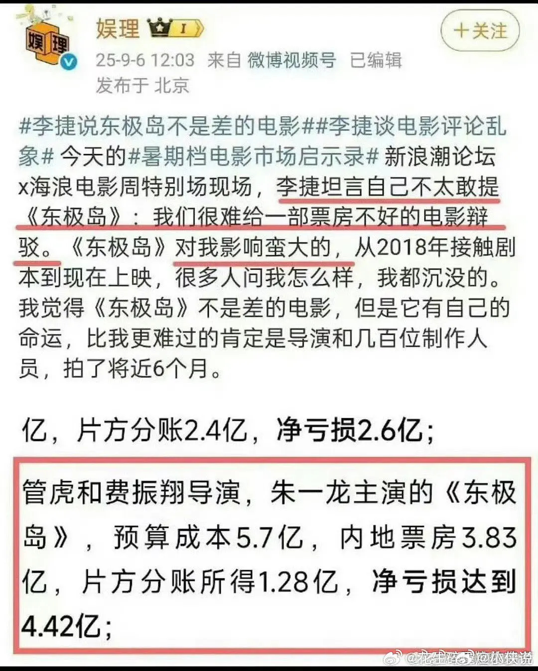 网传东极岛净亏损4.42亿,开拍之前这可是大饼,难道朱一龙一点也不扛票房吗?