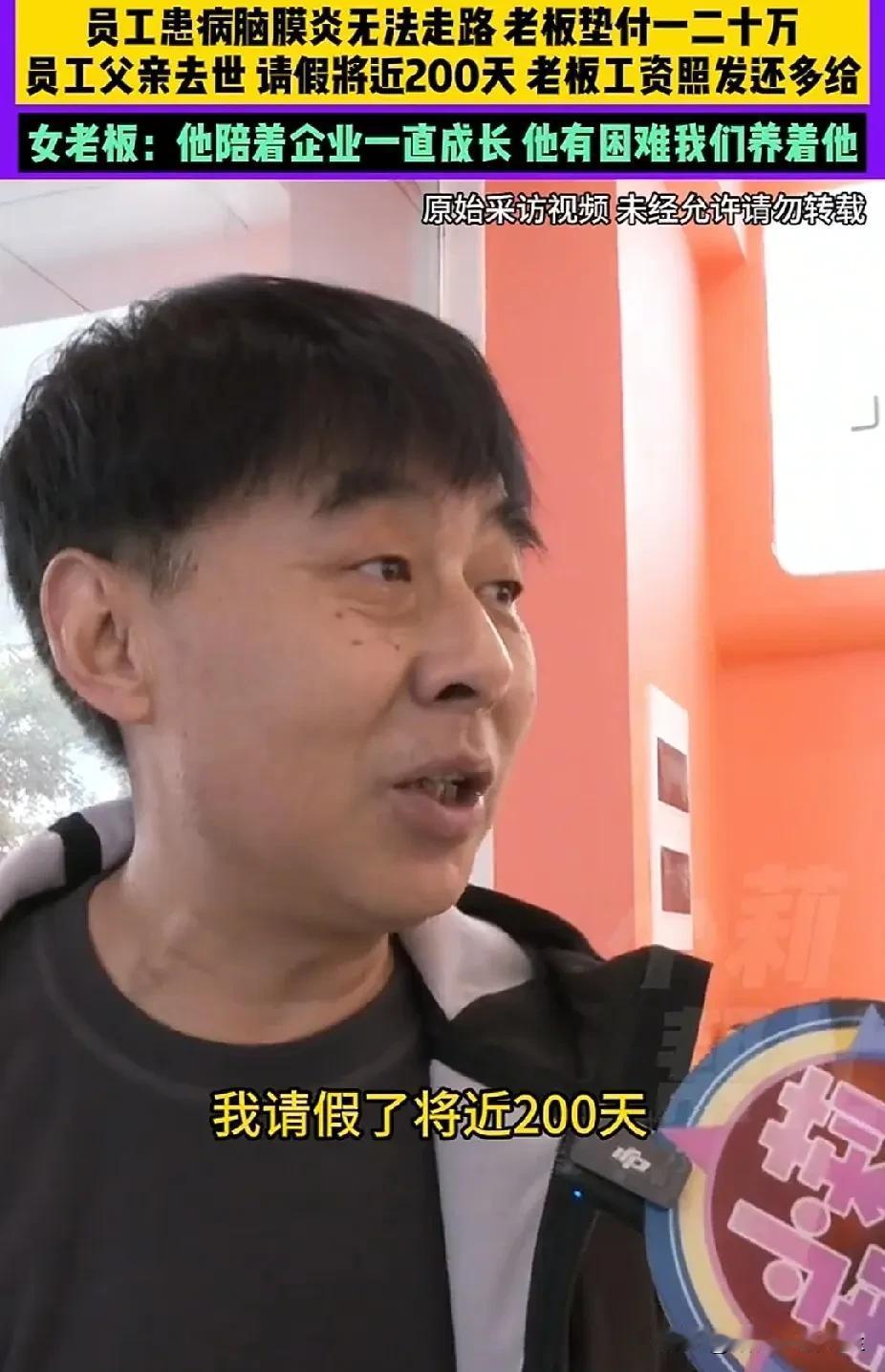 “神仙女老板”!河南员工为照顾父亲,一年请假200天,女老板工资照发不误,还会多给,患脑膜炎垫付10多万,获无数网友怒赞。 女老板:他有困难,我们可以养着他。 太暖心了!没想到这世上,还有这样雪中送炭的“神仙”女老板,员工请假工资一分不少照发,甚至还给得更多。 10月16日,河南一家内衣企业男员工曝料,老板真是一个不折不扣的大好人,给了自己第二次生命。 该男员工从20多岁时,就进入该企业工作,到现在已经50多岁了,是一名“元老级”的员工。 2005年期间,父亲生病无人照顾,不得不请假照顾父亲,这一年共365天,他却请假200天。 然而,老板不仅批准假,还照正常一样给他发工资,发的还比平时多。 2017年,员工患上脑膜炎住院,共花十多二十万,老板全报销了,自己没掏一分钱的腰包。 据悉,这名女老板叫王红霞,经营着一家民营的睡衣企业,在当地口碑极好。 她表示,员工能陪着企业一起成长,在他困难时不必担心,企业可以养着他。 让员工无后顾之忧,可以恢复得更快点,继续为企业发光发热。 如此重情重义的女老板,用行动诠释着“企业大家庭”的真正含义。 怪不得收获无数网友点赞,员工请假200天照发工资,超暖心!既尊重员工孝心,又彰显责任担当,定能让员工更有归属感,助力长远发展。 也有网友分享求职经历,像这样的老板,想不发财都难!不像我老板卸磨杀驴,觉得稳定了,就开始降工资,从我们员工身上节省。 将克扣的钱,用到公司其他多出来的开支里,逼着我们自己离职然后,再找更便宜的员工。 个人观点 老板与员工,能够超越雇佣关系,而不是像“周扒皮”,说明了一个朴素而深刻的道理。 善良,从来都不是单行线,当把员工当家人,员工自然也会把企业当家。 女老板的无私大爱,让我们相信了,职场除了利益,还有情义;企业除了制度,更要有温度。 三十年行动上的相守相扶,从来不是锦上添花的热闹,而是雪中送炭的温情。 你也遇到过这样的好老板吗?反正我是没有遇到过。 参考内容来源于《小莉帮忙》 员工为照顾父亲请假200天工资照发 河南企业好老板