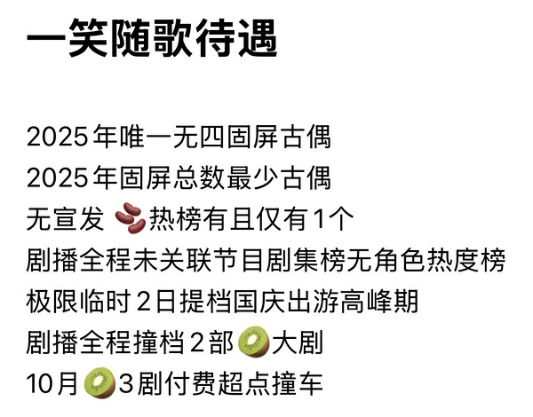 一笑随歌 李沁、陈哲远《一笑随歌》终于在超点的晚上破了的9k的热度,虽然在🍑的待遇一般,是唯一一部超点都只有1个固屏的,但播出效果也算超出预期,到后面副cp在下沉起来了,广告商也都跑步进场,虽然有点可惜,但主演不是流量播成这个效果已经很不错了。