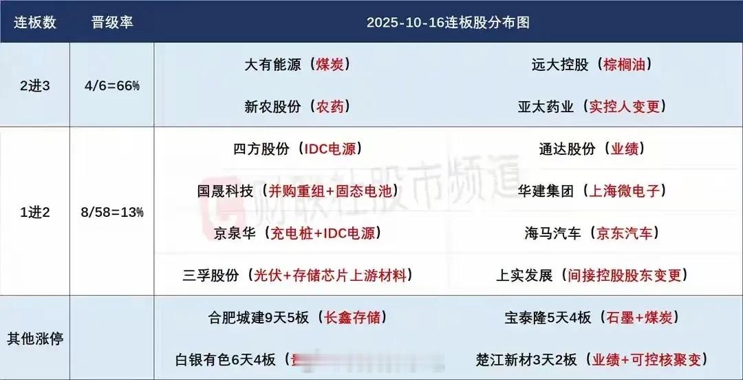 3、煤炭方向近期也是走出了超强板块效应的,大有在早盘高开做多拉升涨停的情况下跟随板块回落炸板,午后在板块再次强势爆发的情况下回封,虽然是一个放量烂板的走势,但是有板块共振上涨,隔日的预期就还在,更何况它在4个三板个股中辨识度是最高的,除了亚太这种连续一字板上去的个股,比较有板块效应的它反而是最可能换手晋级的,前提是板块能够持续,它又能在开盘有明显的弱转强!