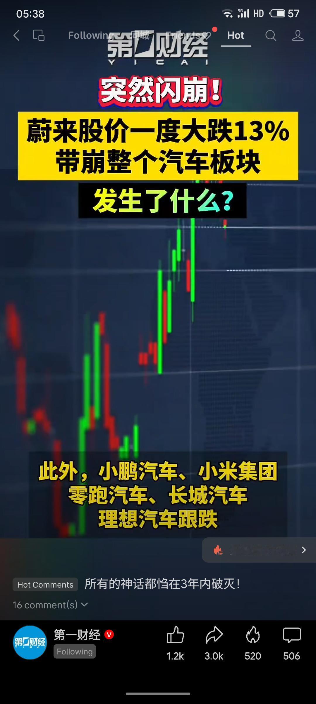 蔚来汽车股价突然闪崩,一度暴跌13%,并引发小鹏、理想等整个汽车板块跟跌。主要诱