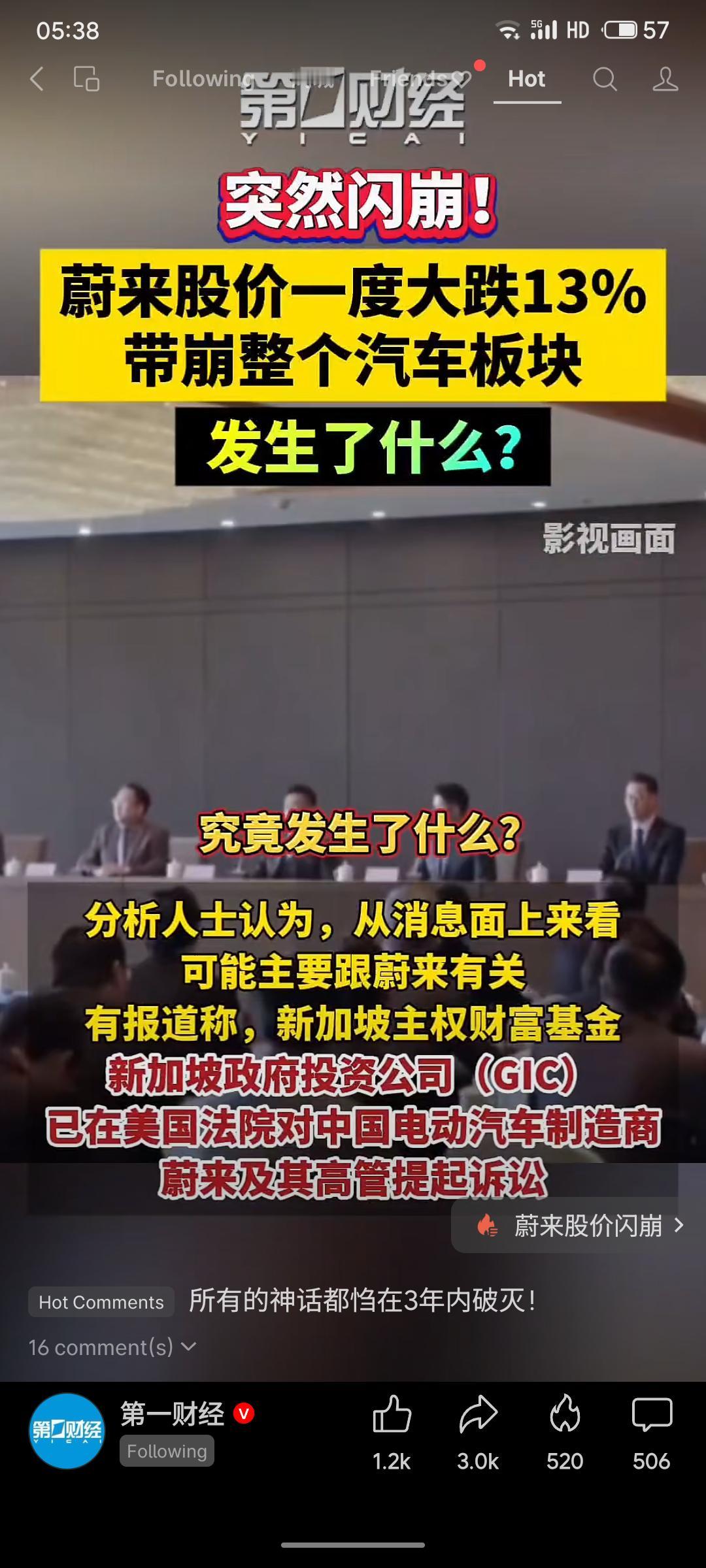 蔚来汽车股价突然闪崩,一度暴跌13%,并引发小鹏、理想等整个汽车板块跟跌。主要诱因是新加坡主权财富基金GIC在美国法院对蔚来及其高管提起诉讼,此消息引发市场恐慌,导致投资者信心受挫。