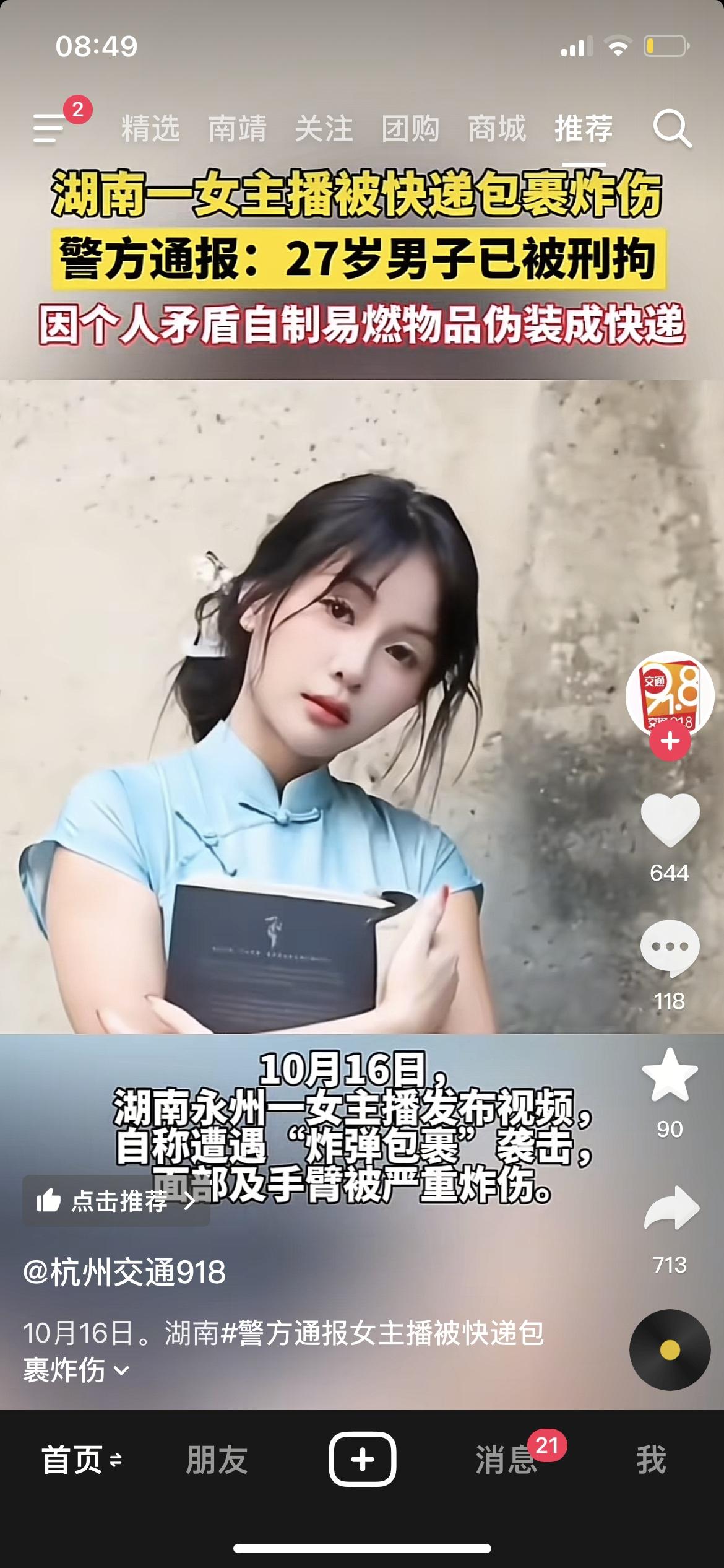 湖南女主播遭快递爆炸袭击:当个人矛盾升级为恶性伤害,我们该警惕什么? 湖南永州