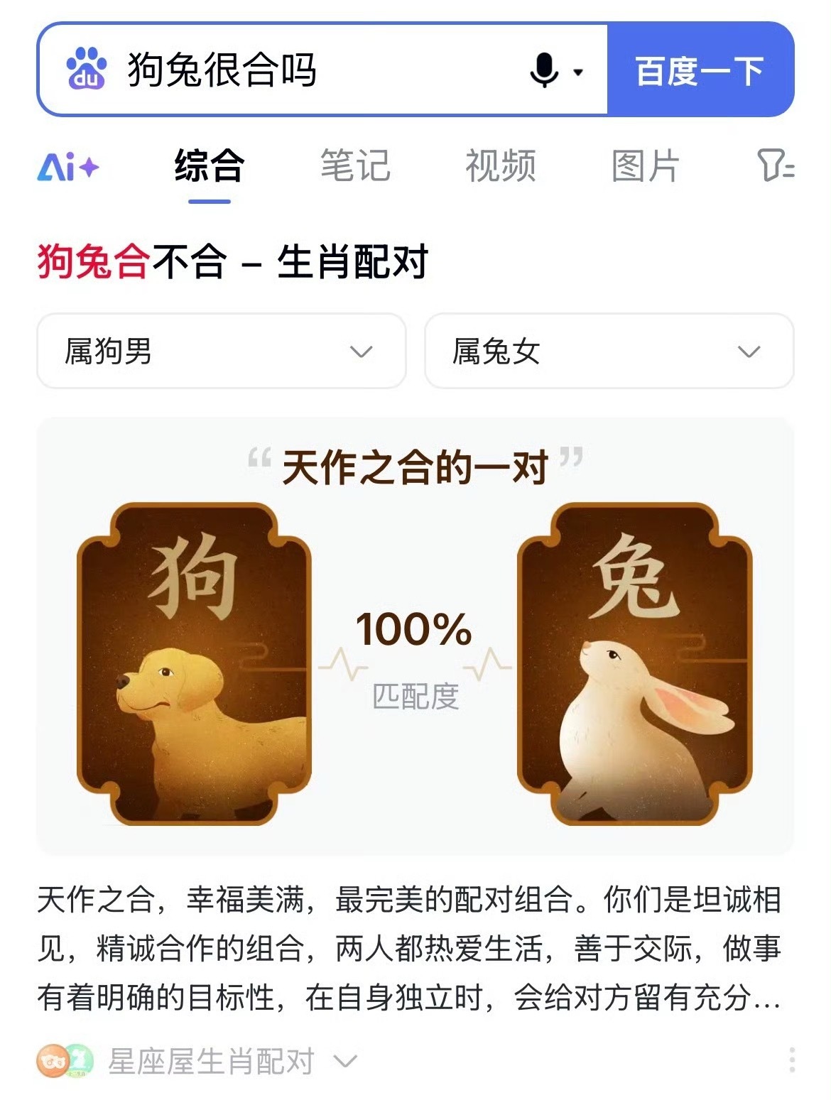 狗狗和兔兔很契合,尤其是在事业方面,很旺