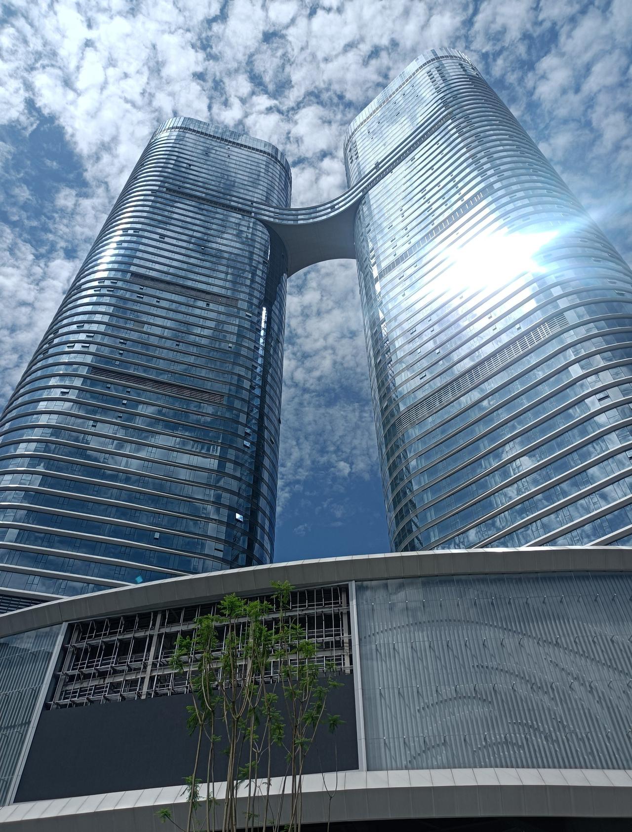 路过沙湾,有时间去荟展新城逛了一圈,外面的大围挡已经撤除,主要路面可以通行,景观和绿植也在布置中,可以看到门头了,但是里面还是打了小围挡,没有看到商家进驻装修的迹象,招商需要加油咯,可能还需要点时间才能开业哦![比心][比心][比心] 这个地方以前是老会展中心,每逢糖酒会和节假日人气爆棚!老会展中心撤了以后,人气就没那么足了,希望这个新的会展双塔尽快开业,再次汇聚起更多的人气,再现往日的繁华![鼓掌][心][玫瑰]大家都翘首以盼崭新的金牛区地标荟展新城带来不一样的体验!🎉🎊🍹🌈[礼物] 拍照的时候天气不错,正好有架飞机经过,看看图一,找找,看到了吗?放大了图片,看图二![种草][吻][礼花][啤酒][爆米花]感受成都安逸生活 我在成都的城市生活 荟展新城 成都citywalk 「荟展新城」