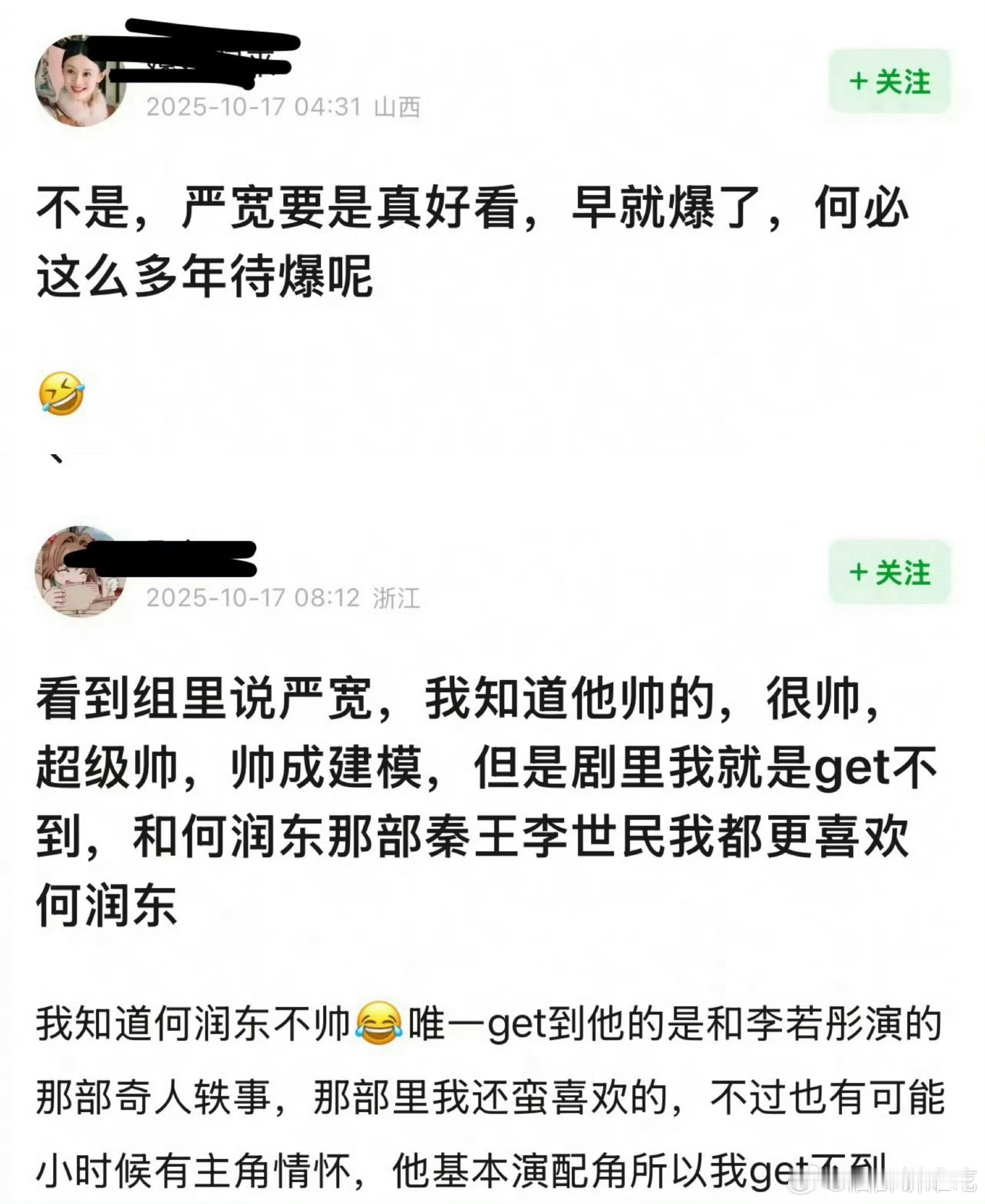 可能因为没有角色滤镜的关系,天涯四美里我确实get不到严屹宽,但很多人都说他帅