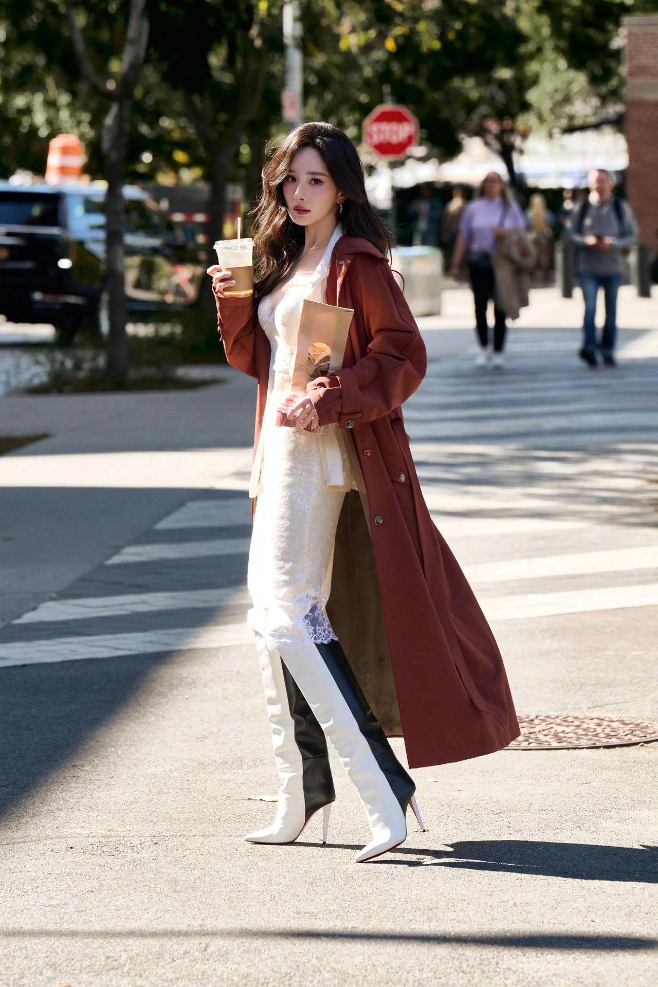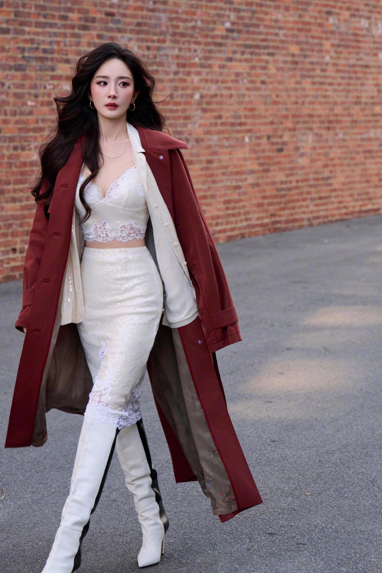 2025.10.15(纽约时间)活动造型,又解锁高定新惊喜!她身穿Ulyana Sergeenko 2016秋冬高定砖红色风衣,内搭维密白色蕾丝套装,把潇洒气场和性感风情完美糅合,星味儿直接溢出屏幕,秋日时髦模板这不就有了~ 幂式穿搭 杨幂 杨幂同款 维密秀