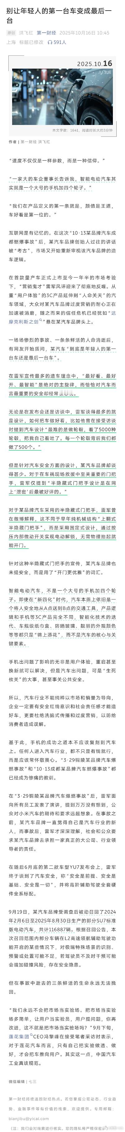 不得不说,第一财经,变得让我有点惊讶,惊讶为何能有如此煽动性的题目,以及下限如此低的操守?造年轻人的第一台车而不是最后一台