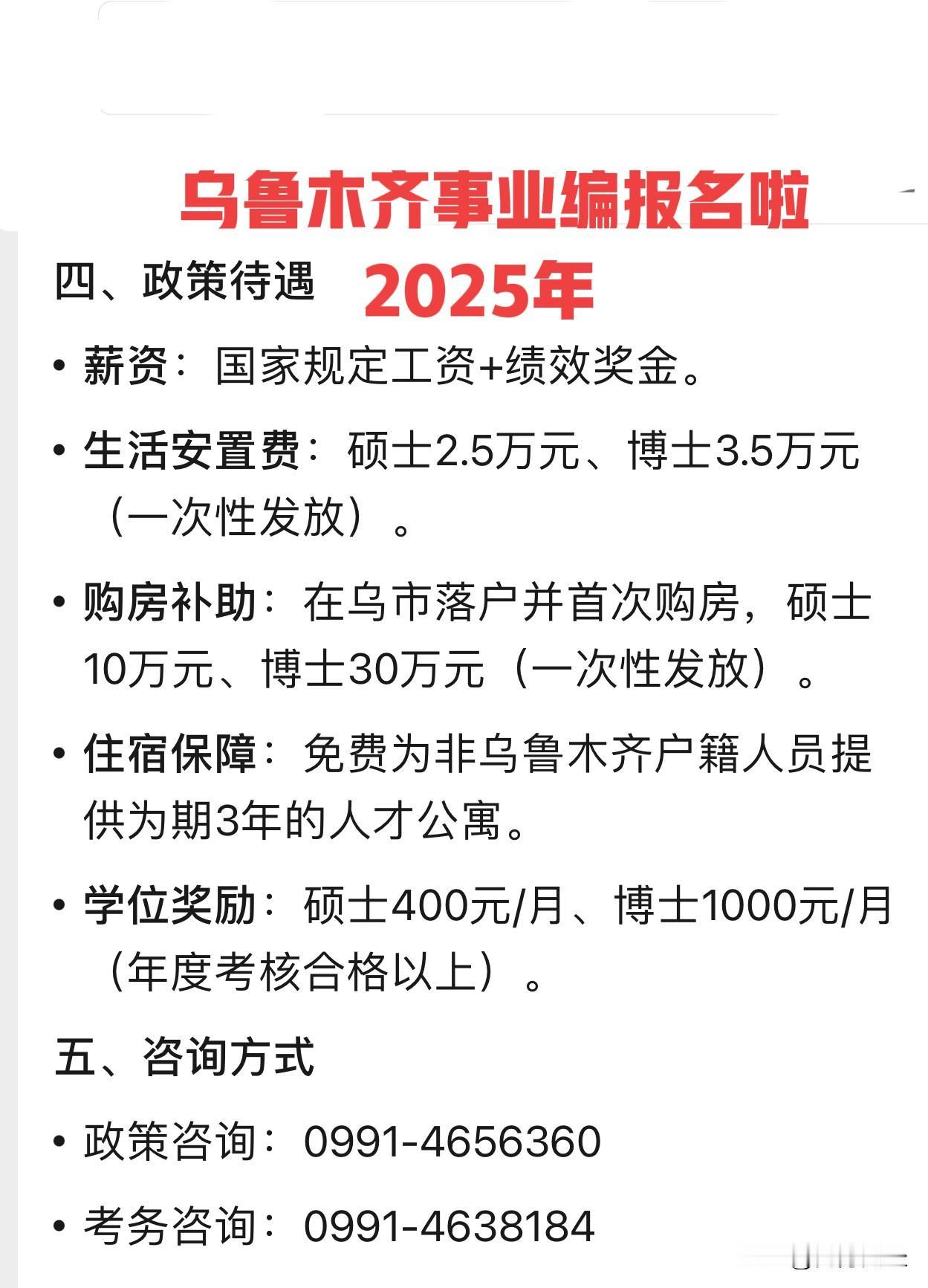 2025年新疆乌鲁木齐市事业编开启报名 2025年,新疆乌鲁木齐事业编报名启动,计划招录191人。报名条件如下:本科及以上学历,年龄30岁以下,面向全国,不限户籍。博士研究生年龄可放宽至35岁。人才可免费入住公寓三年,购房还有补贴。 在许多人眼中,新疆是遥远的边疆,脑海中还留存着经济发展落后的刻板印象。 实际上,新疆早已发生了天翻地覆的变化。 近几年,媒体报道中常常出现这样的描述:新疆是改革开放面向欧亚的桥头堡,乌鲁木齐被誉为“一带一路”核心枢纽、区域商贸中心城市。乌鲁木齐国际大巴扎是极具独特民族风情的旅游胜地。随着大美新疆旅游资源的深度开发,美丽新疆的优美自然风光口口相传,乌鲁木齐在文旅圈的知名度也逐步提升。 乌鲁木齐市作为新疆维吾尔自治区首府,近年来在社会经济等多方面取得显著发展成果。城市建设中机场,高铁,地铁,一样都不少。 2025年上半年,乌鲁木齐地区生产总值达2410.5亿元,同比增长4.6%。其中,第三产业成为拉动经济增长的重要力量,对全市经济增长的贡献率高达103.8%。工业上,乌鲁木齐正加速发展特色优势产业,初步构建起“5 + 2”现代工业体系,产业规模突破1500亿元。 另外,乌鲁木齐成功入选“全国现代商贸流通体系试点城市”,新疆自贸试验区乌鲁木齐片区的改革试点任务也取得积极进展,截至2025年7月已推出72项改革创新成果,推动乌鲁木齐向更加和谐宜居、充满活力的现代化国际城市迈进。 这样的乌鲁木齐,对你有吸引力吗?