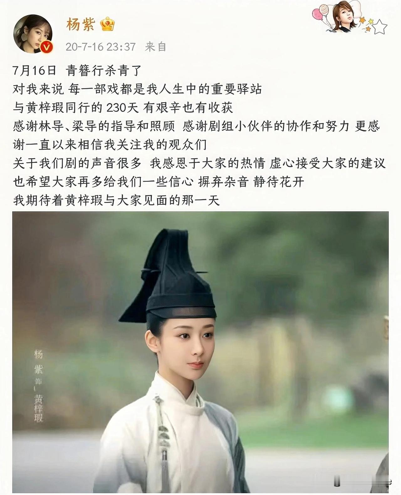 10月17日,杨紫《簪中录》定档,经历过N次狼来了后,这回男主角终于改成了彭冠英