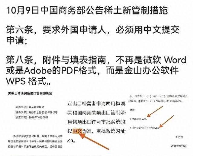 外国人申请稀土使用必须用中文,换个语言、换个文件格式似乎鸡毛蒜皮的小事,其实这是关系到中国全球话语权份量提升的大事,网友大赞:“你们也有今天!”   麻烦看官们右上角点击一下“ 关注”,既方便您进行讨论和分享,又能给您带来不一样的参与感,感谢您的支持!   10月9日,中国商务部发布2025年第61号公告,明确规定出口管制升级,范围从原有的7种稀土元素扩大到12种,新增了钬、铒、铥、镱、铕等中重稀土,并首次将稀土技术、设备及原辅料纳入管制条例。   各国企业打开中国商务部官网,准备像往常一样下载申请文件,以为不过是多填几栏、多盖几章,结果却被一个前所未见的提示拦在门外。   “请使用中文填写,附件仅限WPS格式。”短短一句话,把无数英语母语的世界玩家堵在门外,硬生生抬出一个全新通关密语,你想要稀土?先学中文!   有外企负责人以为是系统出错,一遍遍刷新网页,甚至还想切换语言。   WPS、中文、一次过关,有人这才意识到,规则的天平正在静悄悄地倾斜,这不只是语言问题,这是中国在用最柔和的方式展示最硬核的主权:在我们掌握核心资源的时候,规则不再由别人说了算。   这项新规的背后,是稀土出口范围从7种扩大到12种,中重稀土悉数纳入,更重要的是,技术、设备、乃至稀土相关的原辅料一并受到管控,军事用途原则上不批,那些企图买民用、造军用的小算盘彻底失效。   以前的规则好比马路边摊,谁来都能凑合一下,如今中国把桌子铺平,把碗筷摆正,吃饭可以,但要排队、报名字,还得会说句“谢谢老板”。   很多人以为,中国是为了出口气,让外国企业体验一下过去填英文表格的无奈,可事实是这不是口气,而是口径,是一次毫不遮掩的规则重建。   中文不是情绪,而是精度,在出口审批上,一个技术参数、一段用途说明,如果通过英语再翻译回来,误差就像暗礁,轻则表格打回,重则漏洞被钻。   有企业曾借翻译模糊偷偷把稀土转入军工用途,这一次规则直接用中文锁死,从词汇到格式,不给模糊留空间。   再说WPS格式,它可不只是支持国产软件这么简单,WPS可以嵌入水印、追踪改动、校验证书,从提交到审批,每一页都自带行为记录。   一旦出现买了稀土却不知去向的情况,沿着文档轨迹往回查,谁签字、谁上传,一清二楚。   相比之下,PDF就像一张打印好的纸,改了也看不出痕迹,说白了,国外企业不是被要求换软件,而是被请入了一套中国标准的透明系统。   面对这套规则,美欧第一时间表达不适,白宫发言人疾言厉色,媒体高喊不公平,甚至有评论怒指前所未闻。   可有趣的是,他们骂的是结果,却不敢挑战程序,因为世贸组织专家已经确认,中国这套做法完全符合国际规则,没有语言限制的禁令,也没有格式排斥的条款,你可以说不方便,但不能说不合法。   更尴尬的是,美国自己就是祖师爷,只要产品含1%美国产技术,就敢全球拦人,并堂而皇之称之为国家安全。   如今中国说含0.1%中国稀土也得审批,对方瞬间哑火,这不是学谁,这是用他们熟悉的逻辑告诉他们,规则不是你家的专利。   当然这一切并不是封闭,新能源项目、制造业、民用项目依然可以照常申请,路径没有堵死,只是多了一个前提,尊重规则!要合作可以,但请先看清门上的字,此门通向秩序,不通向投机。   有网友大赞,这一波直接大快人心,他们也有今天!还有网友直呼“太好了”,真是天道好轮回啊。   对此,大家有什么看法呢?