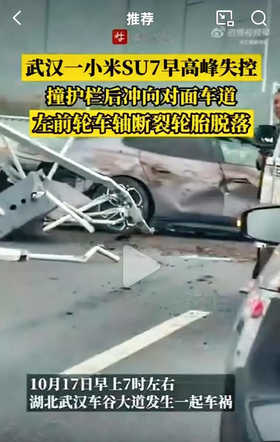 我好像明白 为什么网友总盯着小米SU7的事故不放了? 不到一个月前安徽亳州SU7 Ultra右前轮毂脱落,4S店说撞道沿导致;今天武汉SU7左前轮车轴断裂,车轮飞出去10米,早高峰堵了两小时,两件事隔得太近,换谁都会多想。 问附近4S店说没收到事故车,问线上客服说没接到消息,再问车轮脱落啥情况,客服就说以实际情况为准,这么模糊的回答,网友可不就更想弄清楚咋回事了。 这时候网友多问几句,难道不是人之常情吗?小米汽车SU7 su7小米事故 小米SU7 小米汽车s7 小米su7 亳州小米su7 安徽小米su7