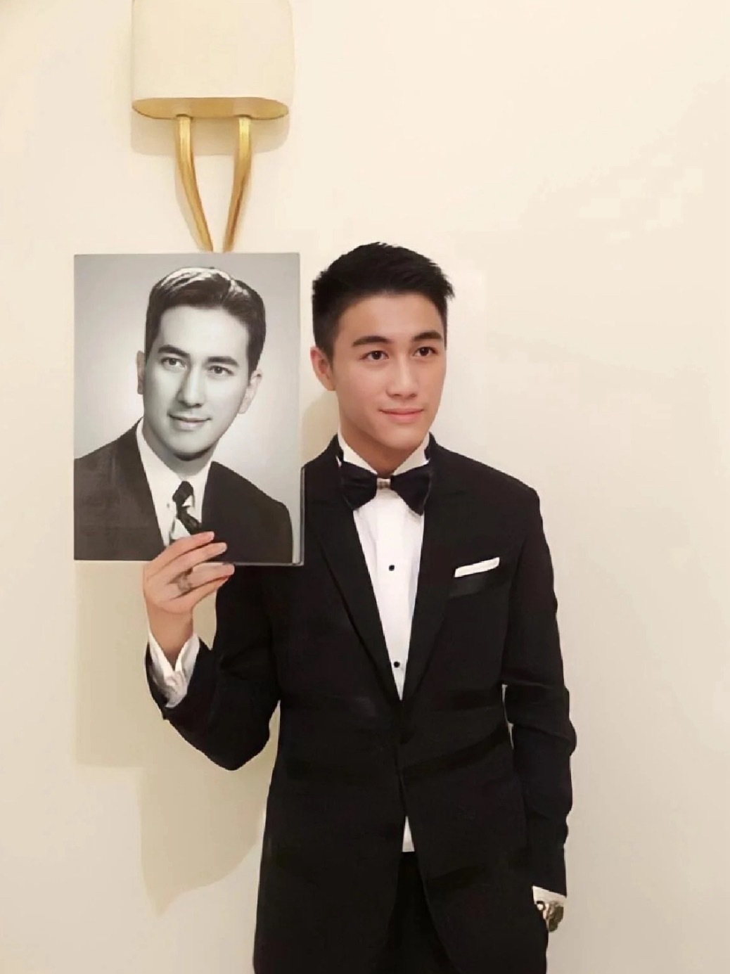 父子俩笑起来好像啊,都是长眼窄双,感觉何猷君和爸爸年轻时蛮像的,他们家有混血基因吗?