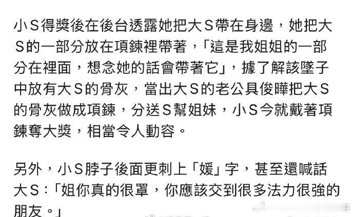 小S今天是戴着骨灰项链和媛字领的金钟奖