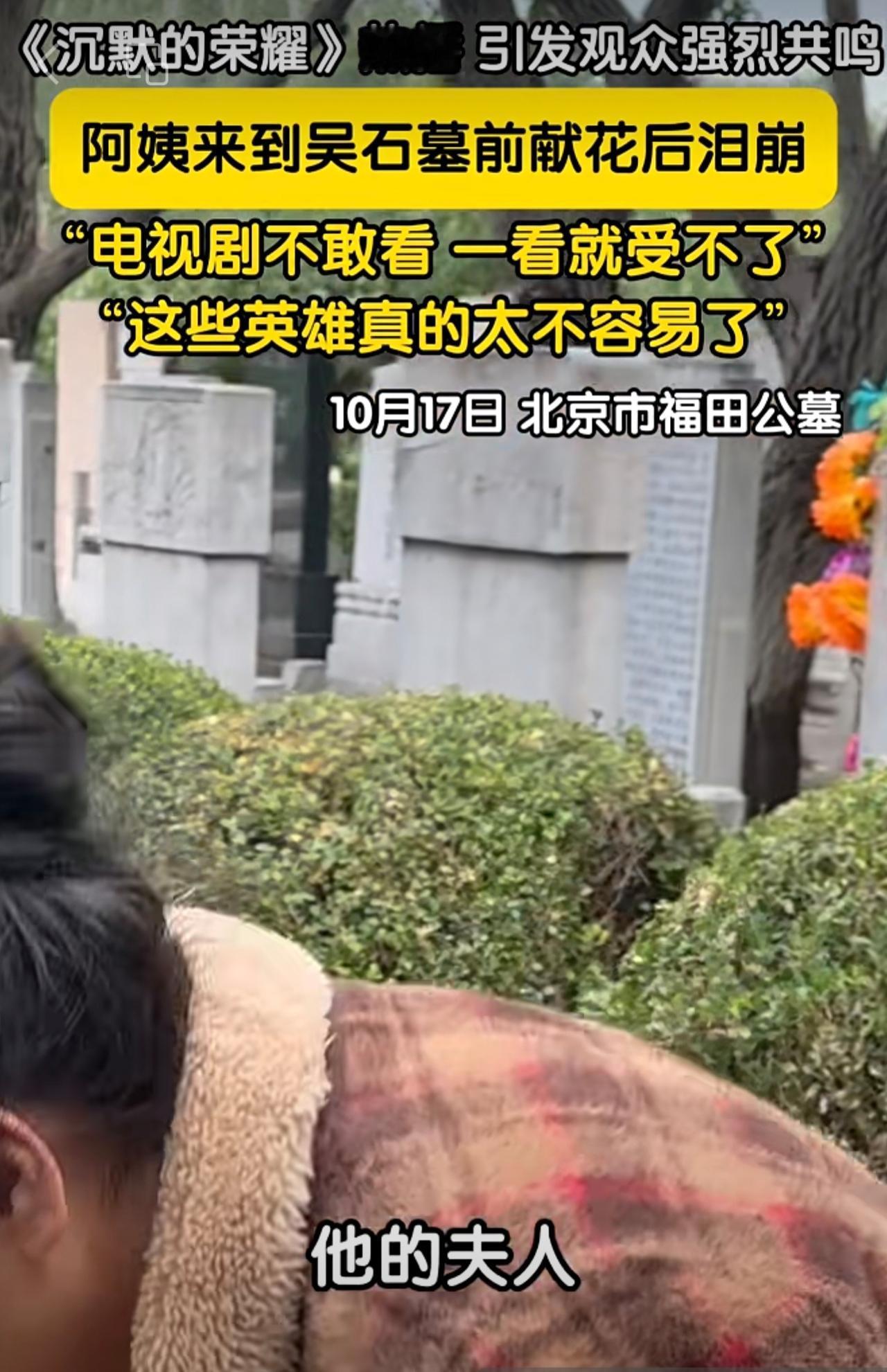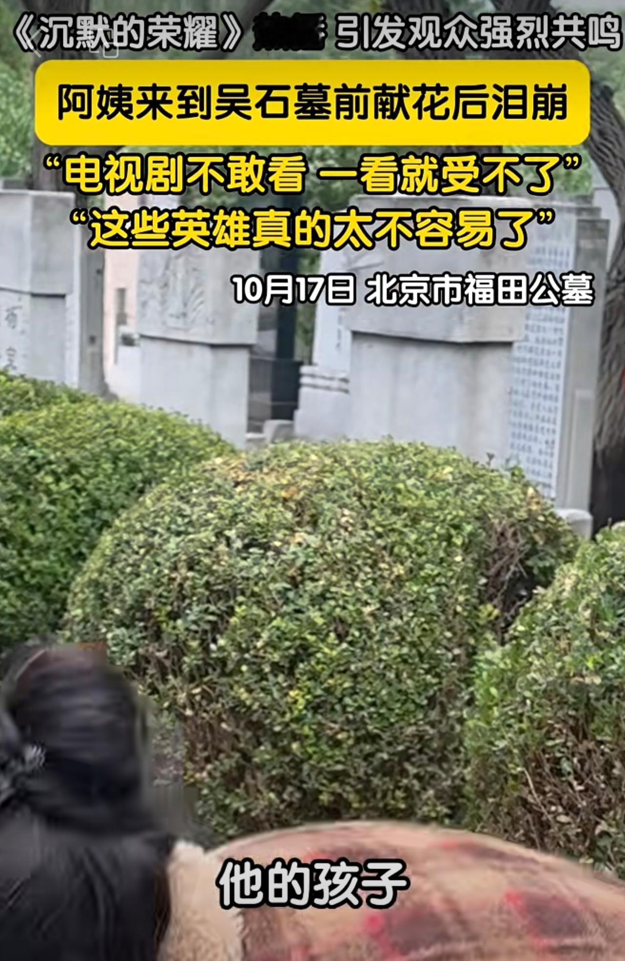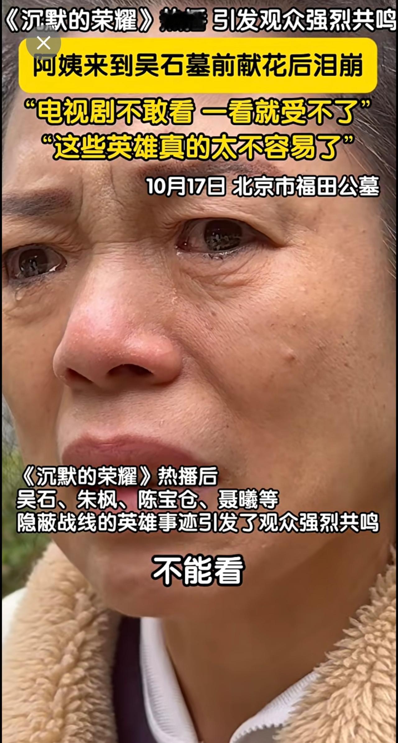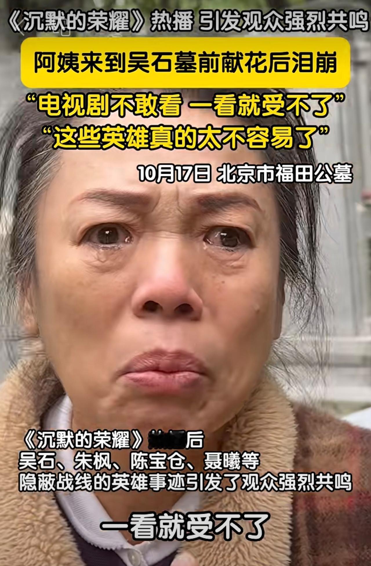 近期,电视剧《沉默的荣耀》热播后,吴石、朱枫、陈宝仓、聂曦等隐蔽战线的英雄的事迹引发了观众强烈共鸣。10月17日,一位阿姨来到吴石墓前献花后泪崩,她表示:电视剧不敢看,一看就受不了,这些英雄真的太不容易了,包括吴石的妻子和子女,都特别的不容易。(记者 赵荆威)吴石 沉默的荣耀
