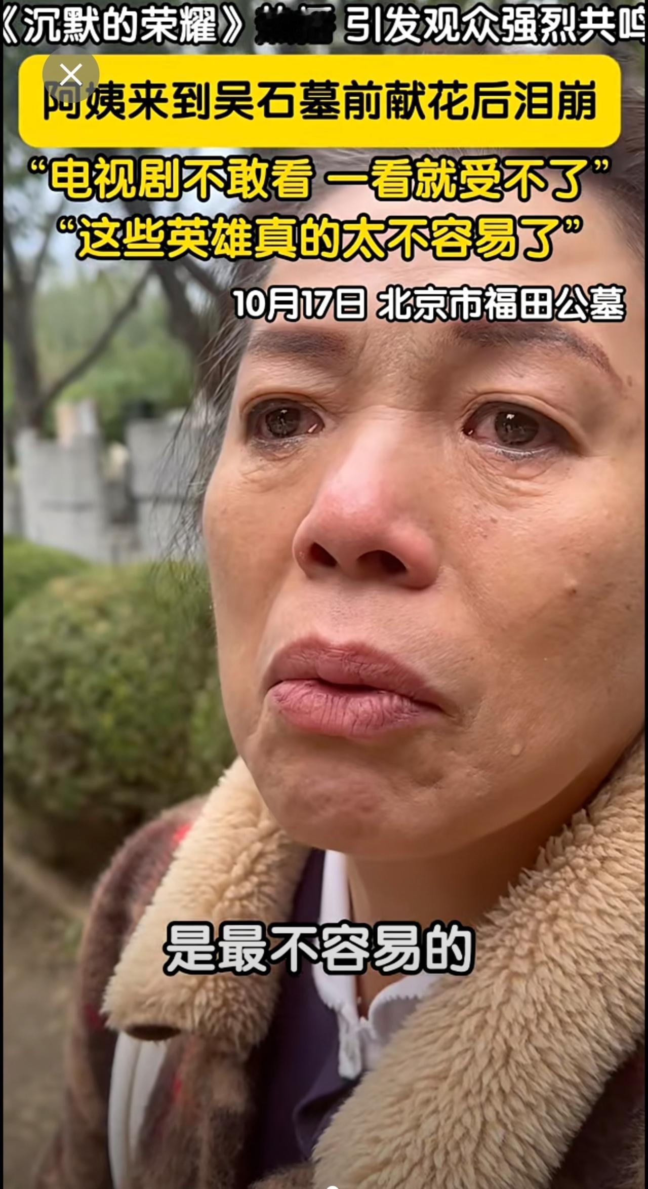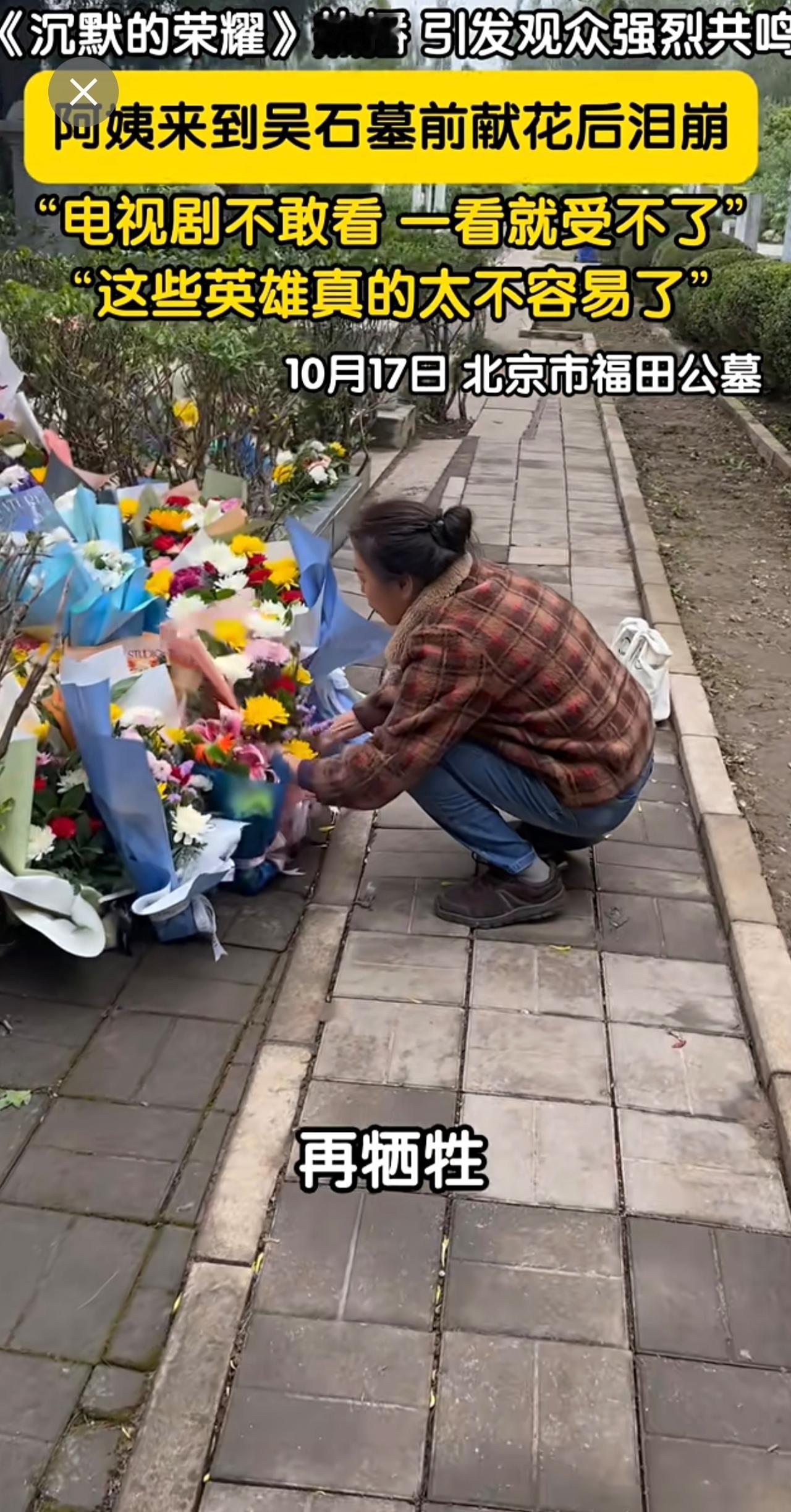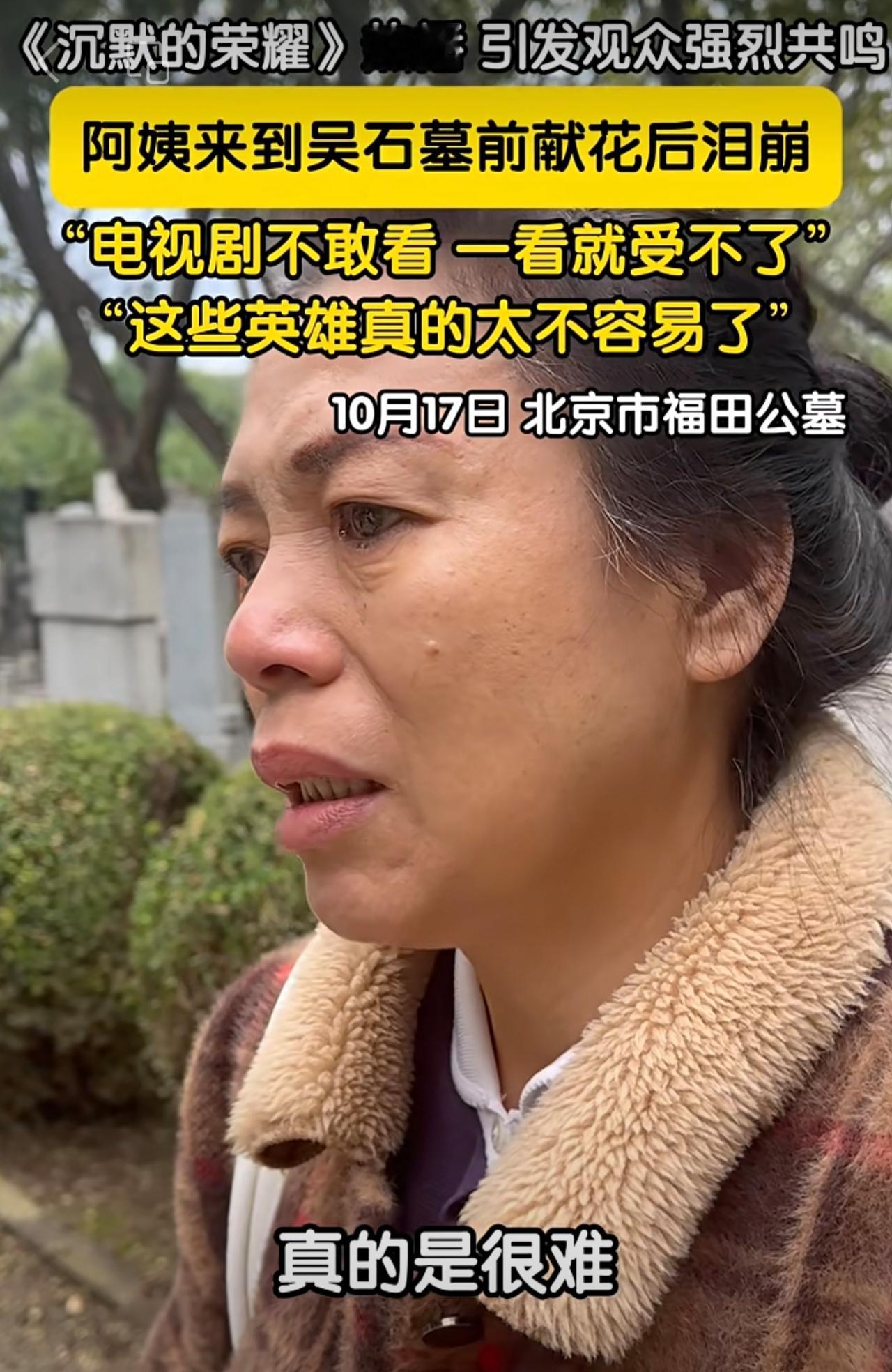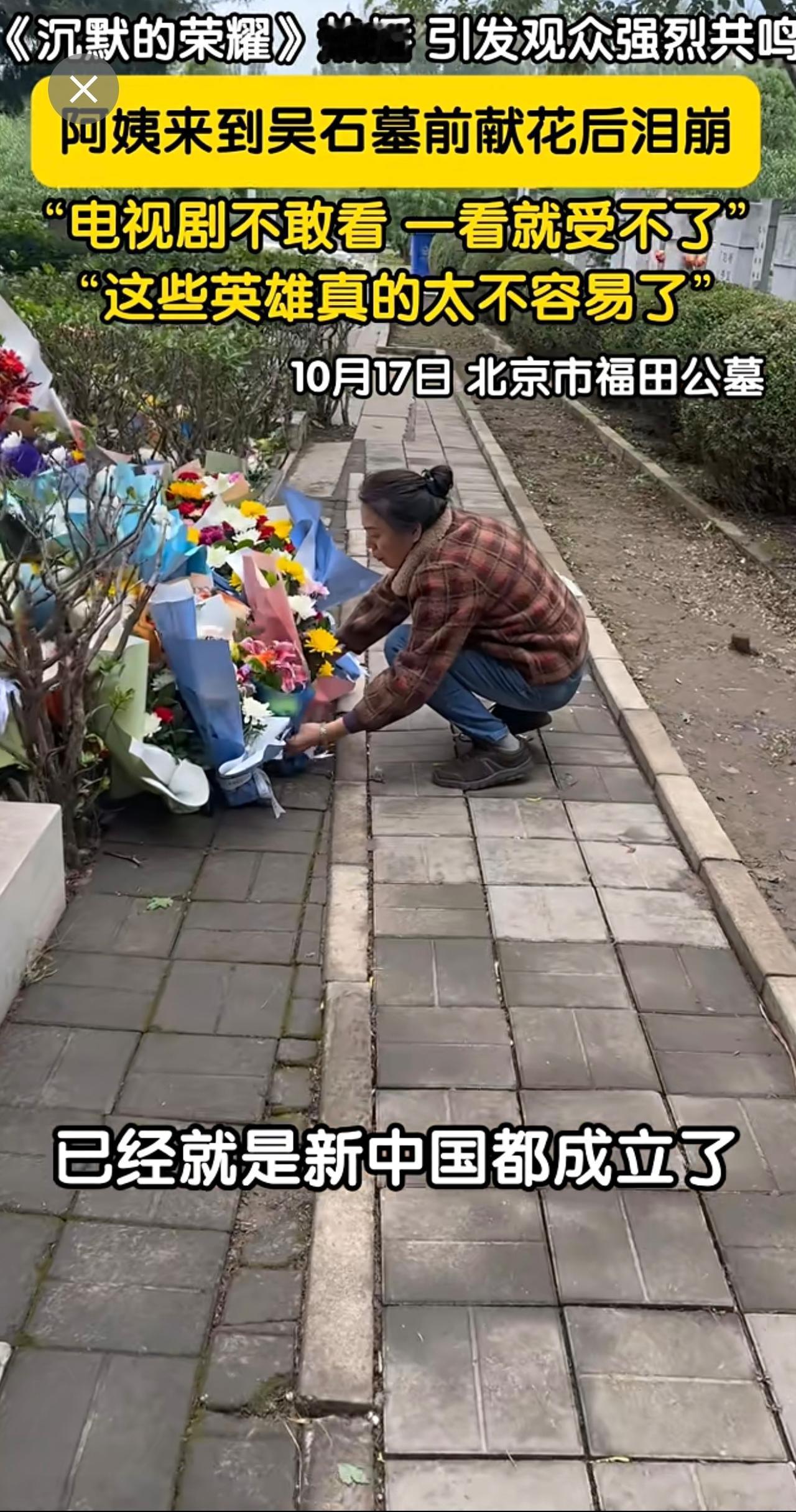 近期,电视剧《沉默的荣耀》热播后,吴石、朱枫、陈宝仓、聂曦等隐蔽战线的英雄的事迹引发了观众强烈共鸣。10月17日,一位阿姨来到吴石墓前献花后泪崩,她表示:电视剧不敢看,一看就受不了,这些英雄真的太不容易了,包括吴石的妻子和子女,都特别的不容易。(记者 赵荆威)吴石 沉默的荣耀