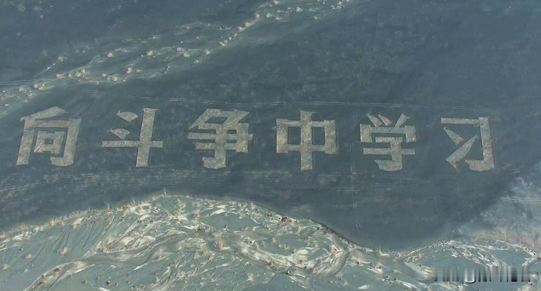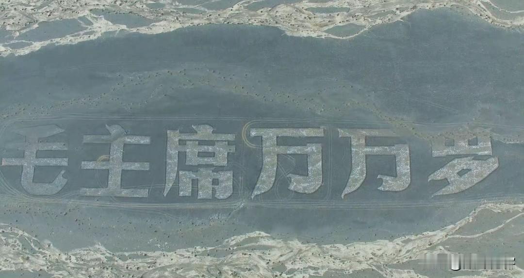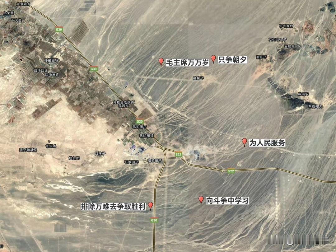 新疆哈密的巨型标语: 毛主席万万岁! 为人民服务! 排除万难去争取胜利! 向斗争中学习! 只争朝夕!