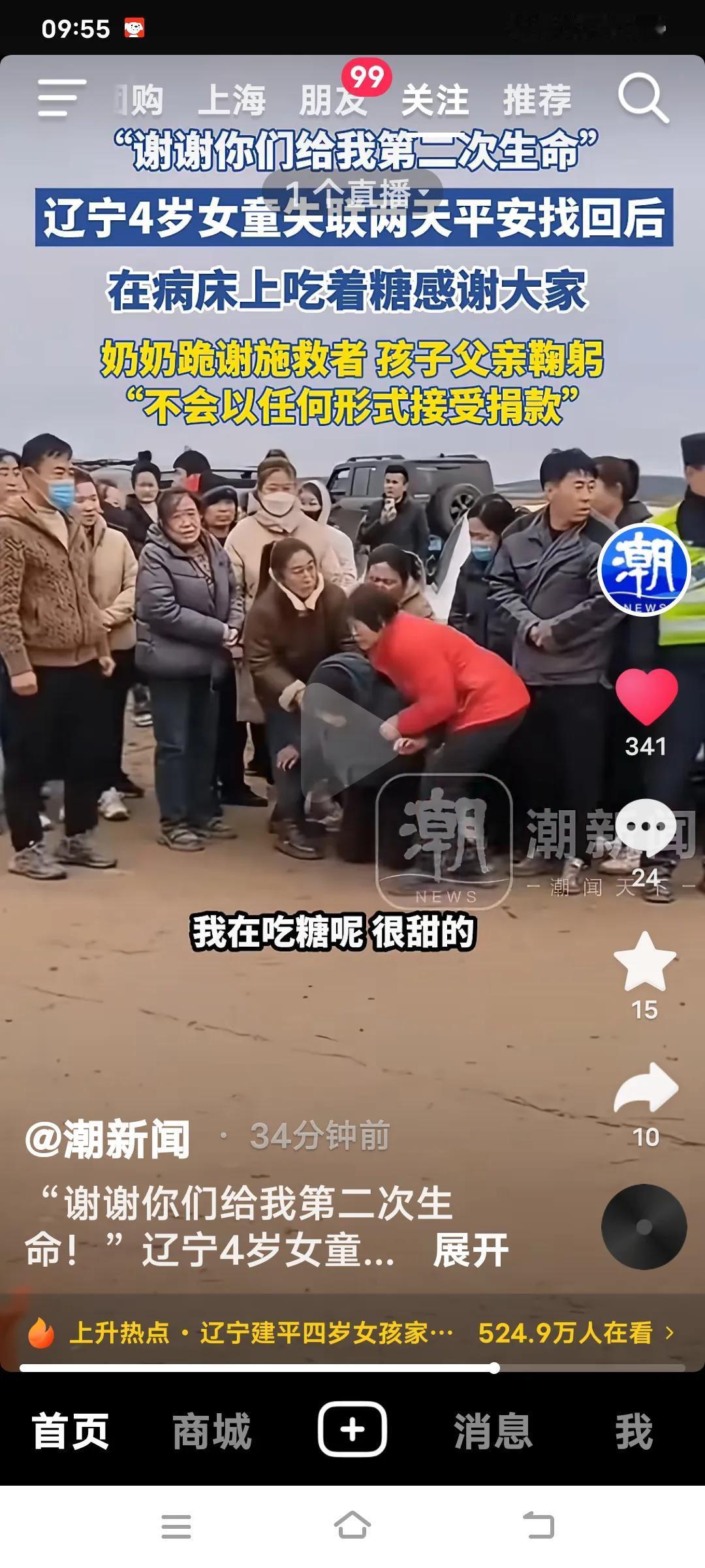 感人的一幕上演了,一个4岁的小女孩小嘴特别甜。她说道:“谢谢大家,给了我第二次生命,我长大后一定会好好学习,谢谢您们了我。我正在吃糖,糖很甜!”孩子除饥饿外,身体无大碍也很正常! 孩子的奶奶跪地磕头致谢,父亲也鞠躬致谢,说道:“你们都是我家的救命恩人,感谢大家给我们家带来了重生的机会。”而且,他们没有以任何理由接受捐款。 确实如此,孩子是父母的心头肉,要是失去孩子,日子该怎么过,生活又还有什么意义呢?况且,没有生养过孩子,就无法体会这份情感。 这也没辜负一万多人的辛苦付出,真像是天意!好多孩子失联,大家不分昼夜地寻找,可结果却令人心寒。最治愈的孩子 两岁小孩的话 谢孩子 女孩动情地说 浙江4岁女童 湖北四岁女孩 4岁女孩