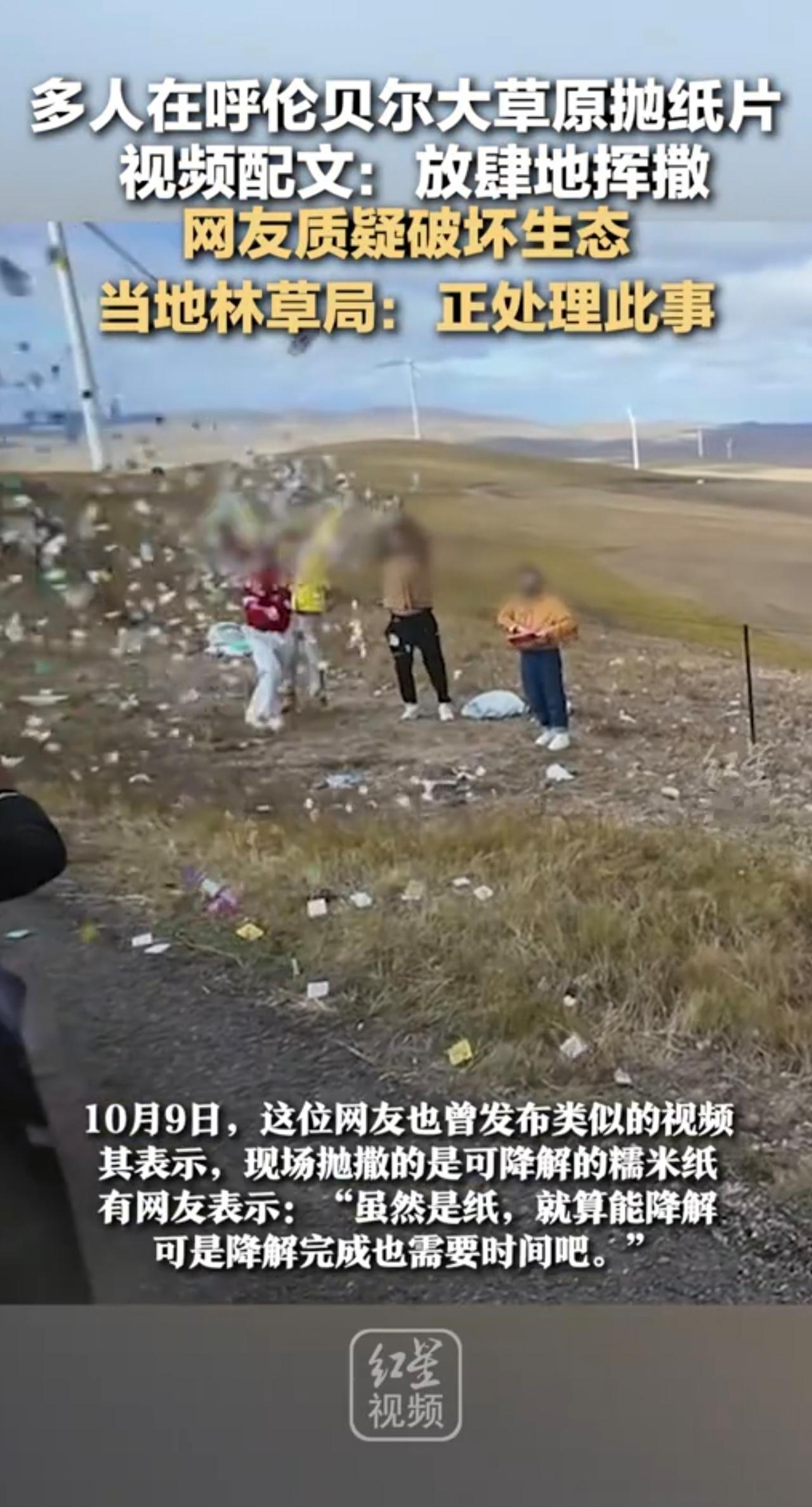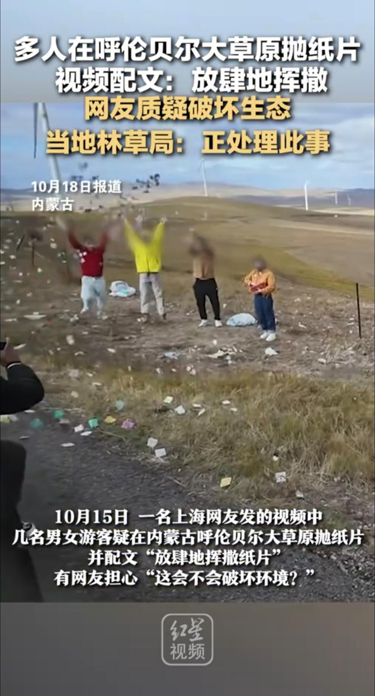 多人在呼伦贝尔大草原抛纸片视频配文:放肆地挥撒网友质疑破坏生态,当地林草局: