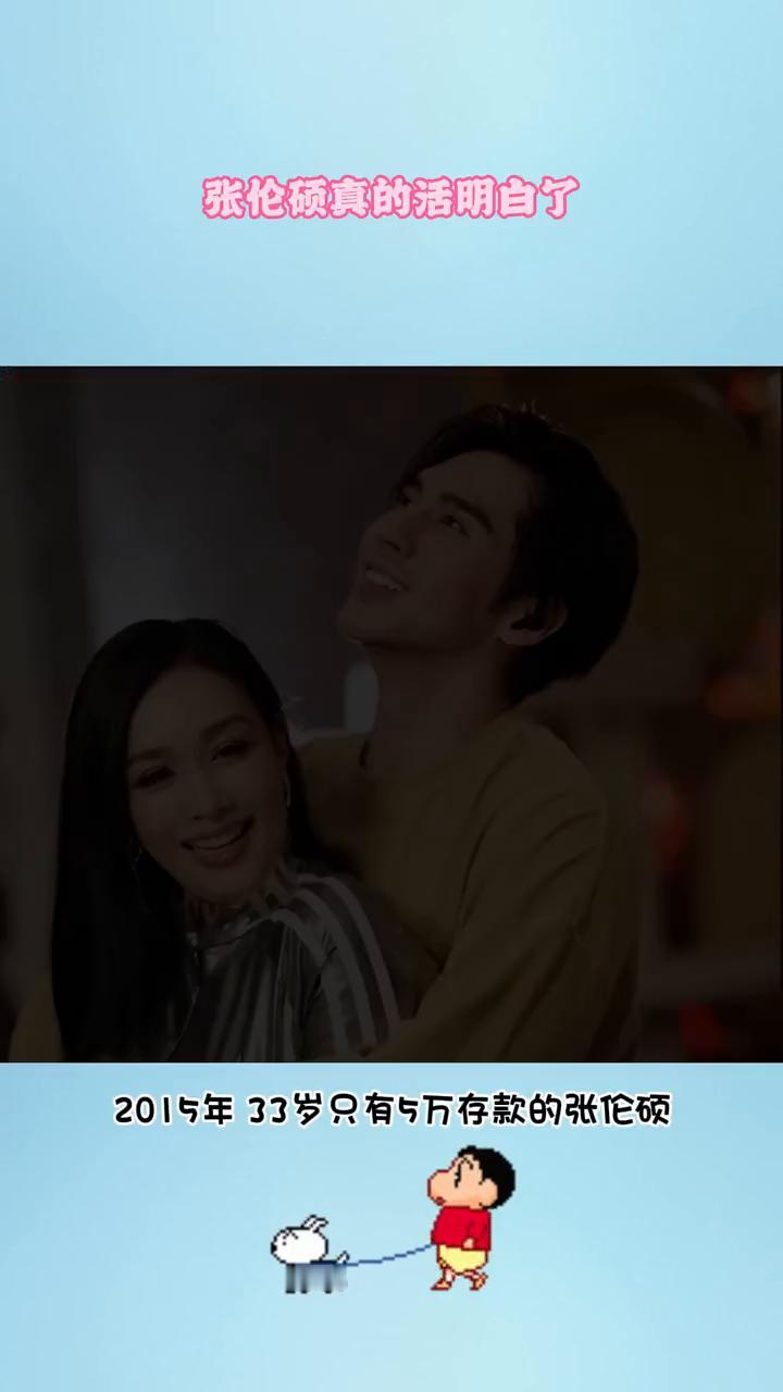 张伦硕真的活明白了。 2015年33岁只有5万存款的张伦硕认识了45岁身家10亿的钟丽缇,他用浪漫和真诚去追求钟丽缇,并且高呼嫁给我,每天吻你100次。钟丽缇看着年轻高大帅气的男人在46岁带着三个孩子勇敢的三婚,而张伦硕也在10年的时间里身家过亿,不得不说这男的真的活明白了。