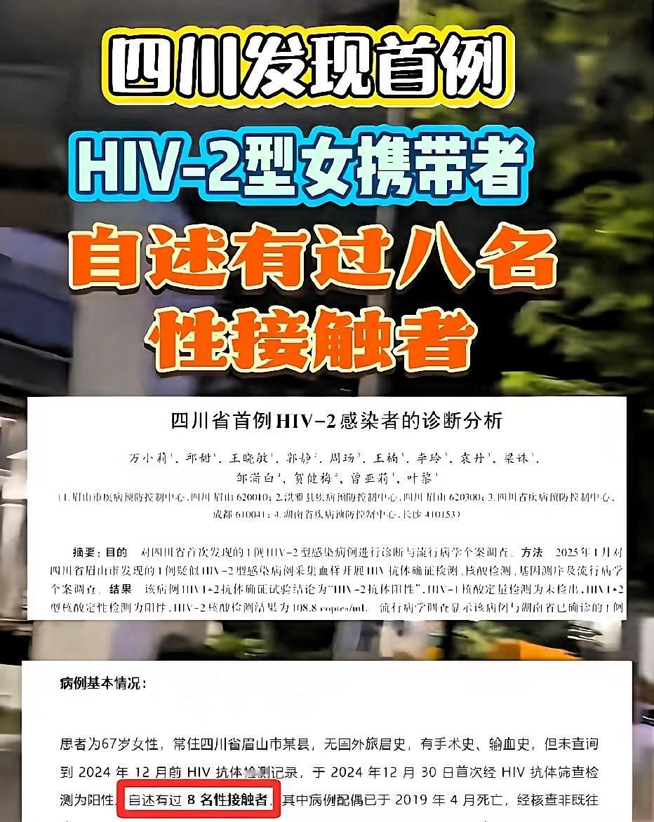四川出了个“王炸”四川一67岁女性被检测出hiv-2病du,成为四川首例。