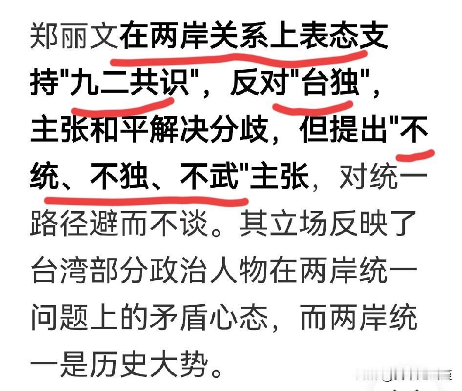 郑丽文,台湾省民进党出来的国民党主席。 恭喜郑丽文当选中国国民党主席。 她是继洪秀柱之后第二位国民党主席。 鲜为人知的是,此前郑丽文还是民进党员,但因为一些事,后被民进党开除,后又加入到国民党。 此次当选中国国民党主席,其横跨蓝绿阵营的zhengzhi资源支持加分不少。 头条ai内容显示其立场矛盾模糊,其支持“九二共识”,反对“台独”,但又提出“不统,不独,不武”的主张。对统一路径避而不谈。 但需要明确的是,统一大势是唯一路径,祖国的完全统一是14亿中华儿女的最终目标,任何时候任何人都改变不了!!! 所以统一台湾,势在必行!!! 郑丽文 中国国民党 中国台湾省 祖国统一 民心所向 台湾统一最有可能以什么样的方式 台湾 一提到台湾你会想到什么
