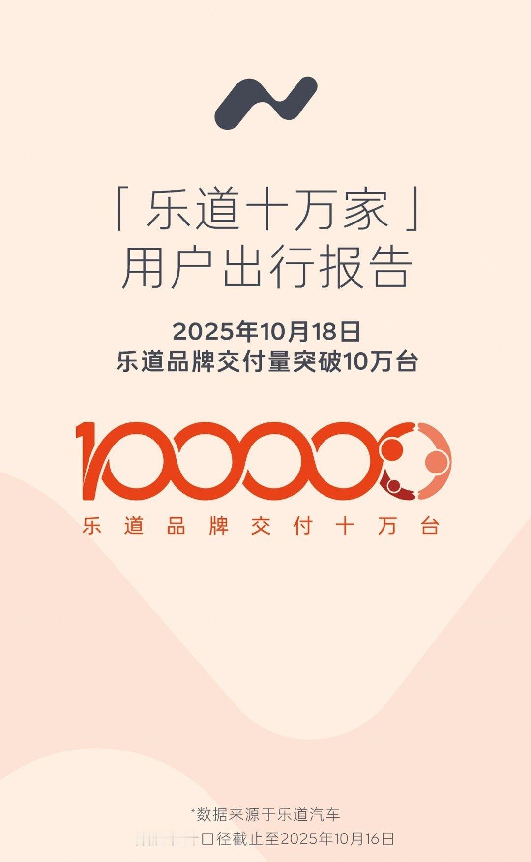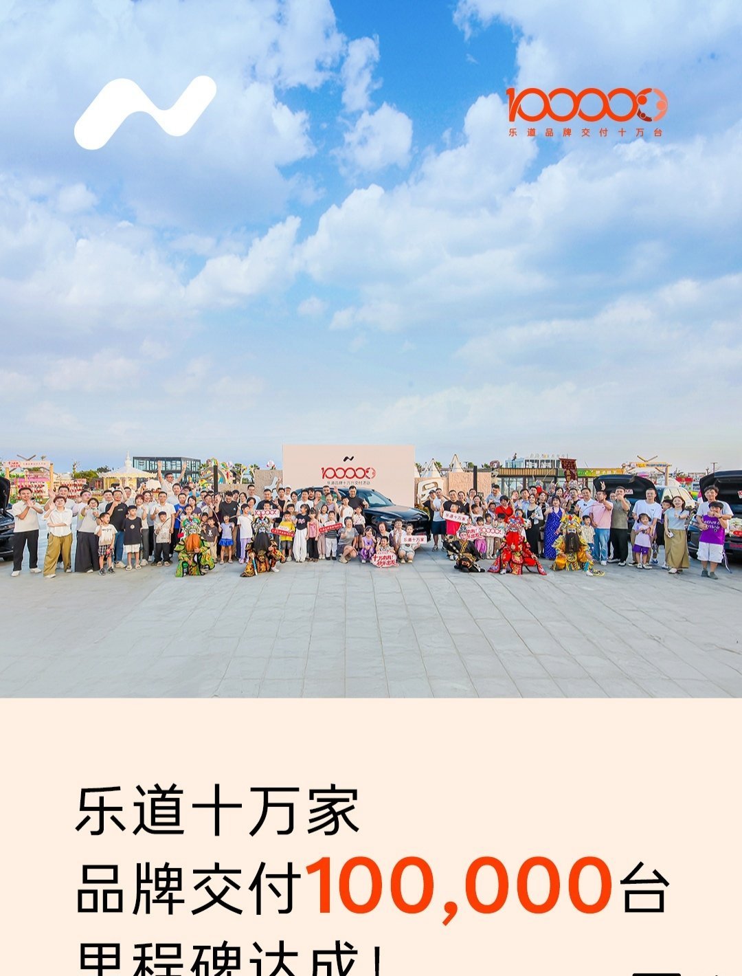 蔚来旗下乐道汽车官微宣布里程碑达成:10 月 18 日,乐道品牌迎来第 10 万台新车交付,乐道汽车总裁沈斐在位于广东省汕头市的东海岸公园营地向第 10 万个用户家庭交付新车。