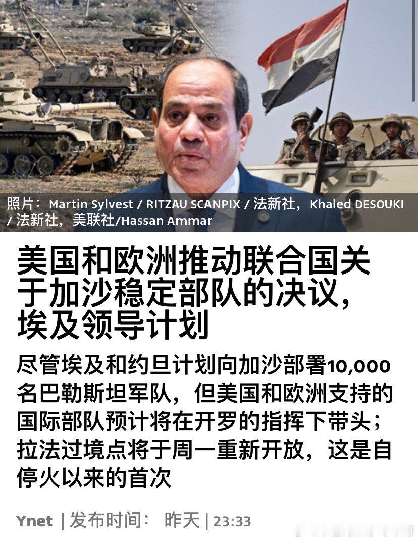 欧洲和美国官员正在推进联合国安理会的一项决议草案,授权在加沙地带建立一支具有广泛权力的国际稳定部队,排除哈马斯,在埃及的领导下控制加沙安全。海外新鲜事 该部队与通常的联合国维和部队任务不同,它行使类似于近年来在海地给予国际部队的授权。以色列对此认可。
