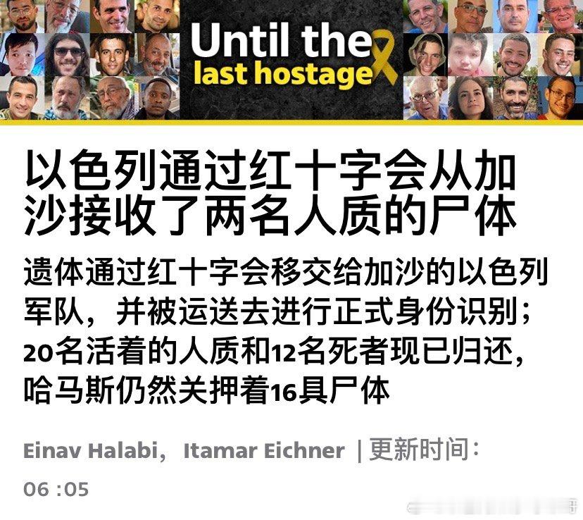 在各界压力下,哈马斯又向以色列归还了2名人质遗体。还有16名人质遗体在加沙。