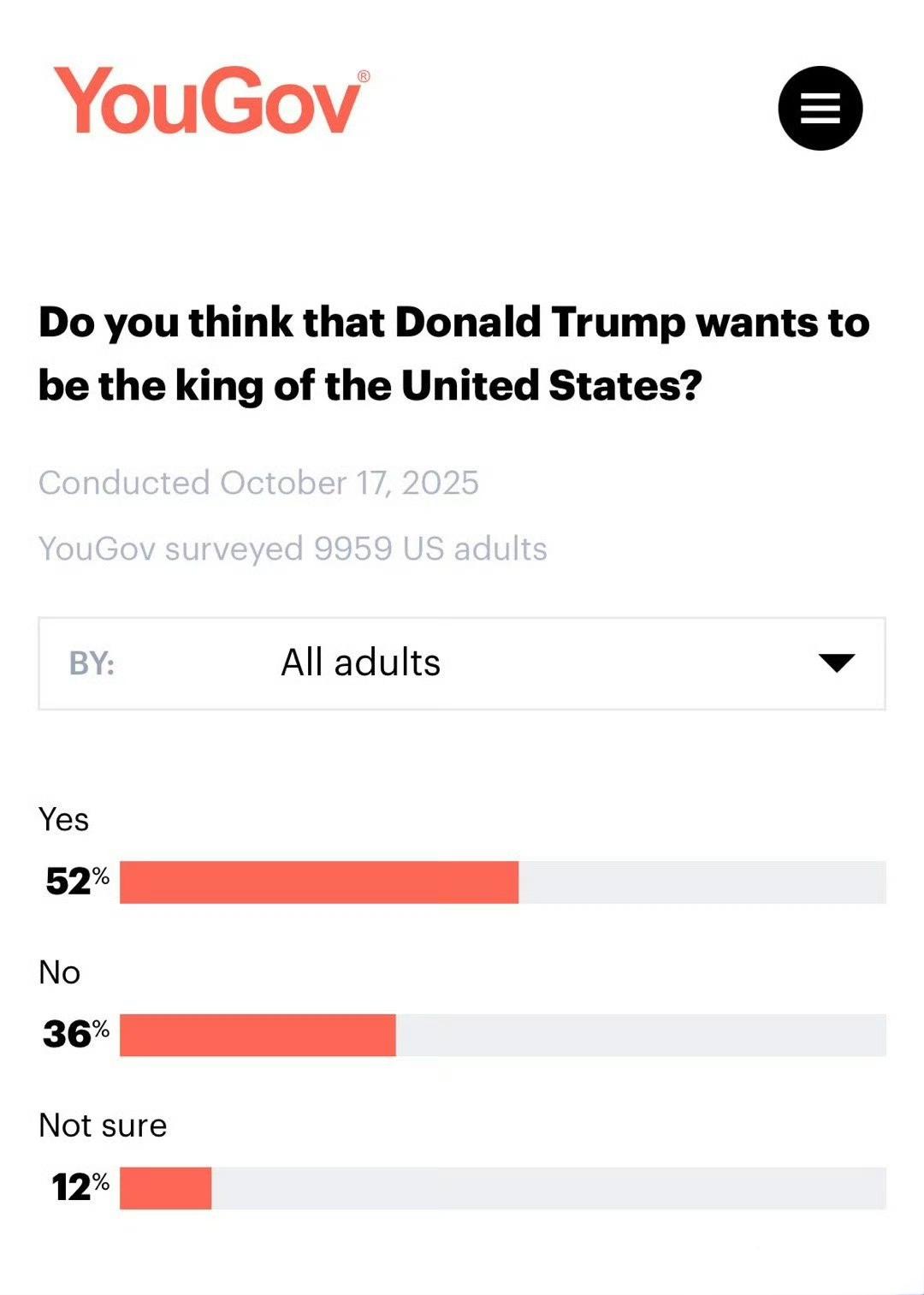 抗议特朗普的美国人打出的新旗号是“no king”,不要国王,说特朗普想做美国王。 一方面,说特朗普想当国王明显是低估他了,特朗普明明是想当皇帝。 另一方面,虽然美国宪法规定美国是宪政联邦共和国,但是历届美国总统以及其他高官就职,大多都手按圣经宣誓,也就是向上帝宣誓。 君主神授,神权和君主制才是配套的。从这个角度说,美国如果真改成君主制,还真不违和。