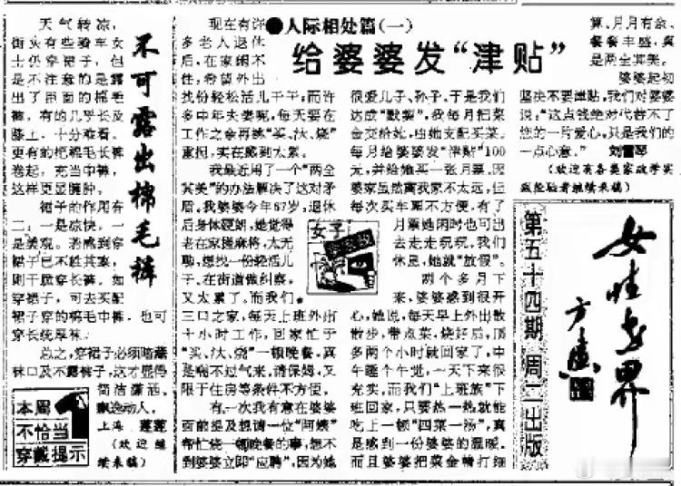 而老底子的上海人,秋冬季穿棉毛衫、棉毛裤,一度是最时髦的。我翻看上世纪80年代的《新民晚报》,“穿裙子不可露出棉毛裤”、“小孩的棉毛裤要不要开档”、“假领头和棉毛衫怎么搭配”,都是热点话题。1997年,还有两名市民寄给上海市长100条棉毛裤,希望帮助转交给云南边区贫困人民。