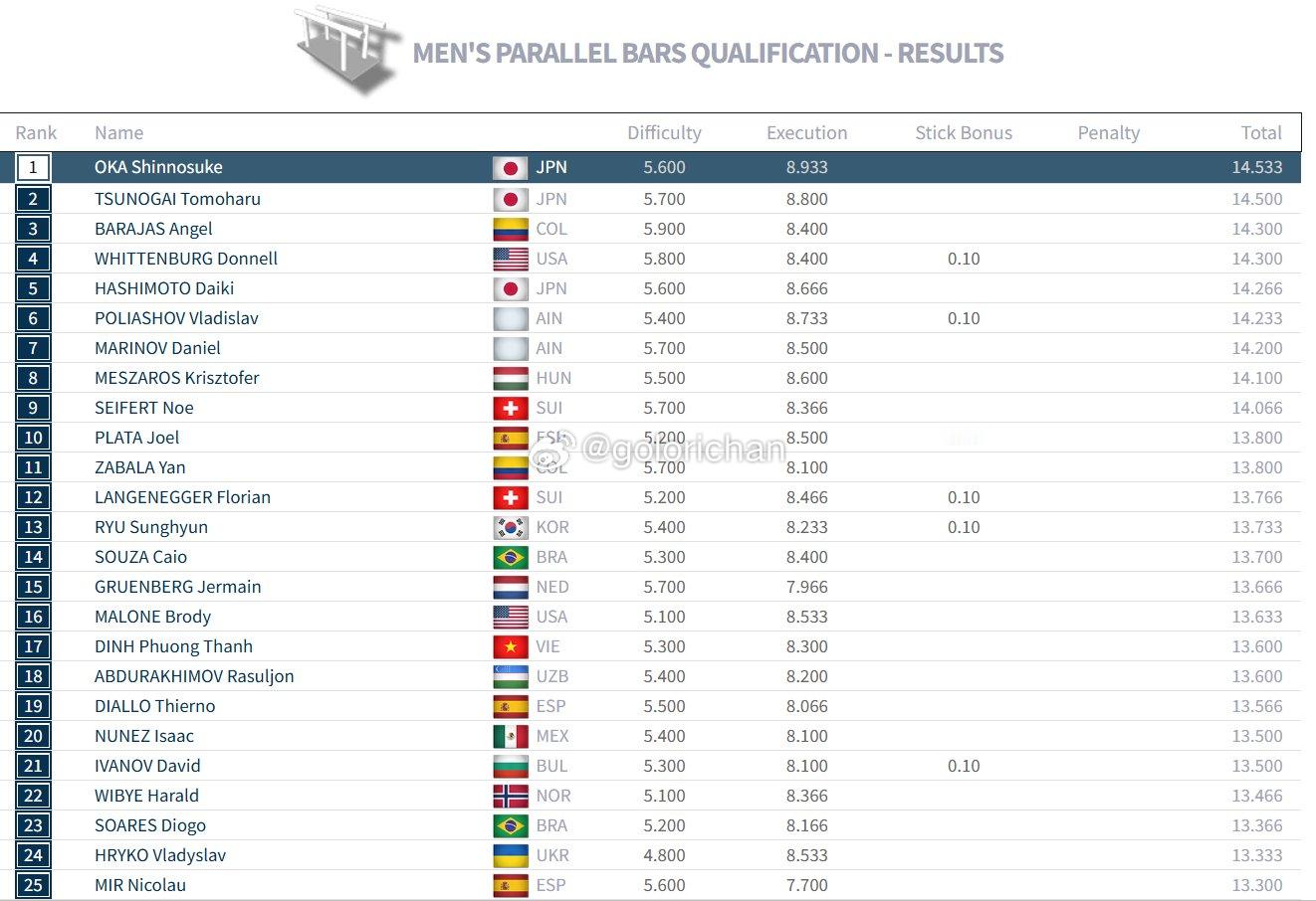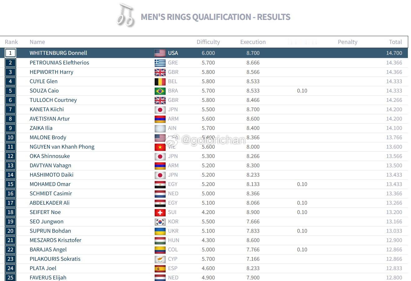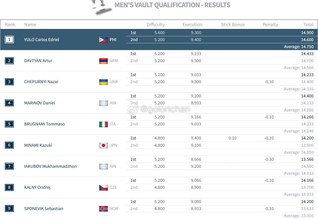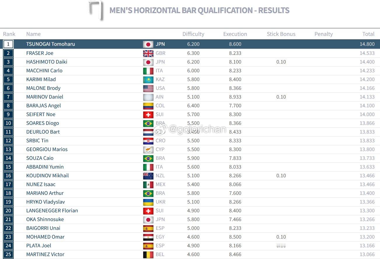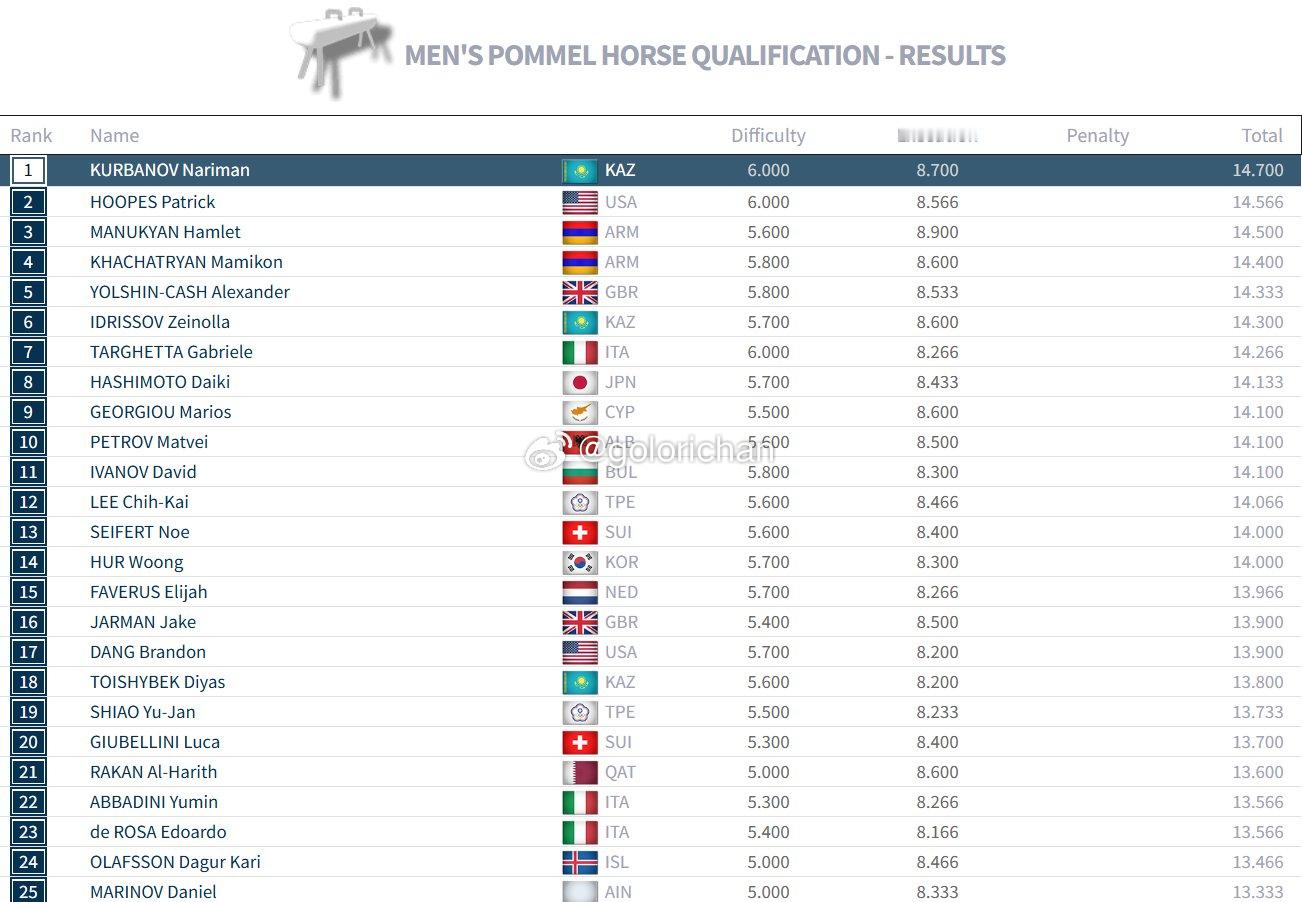 世锦赛day1成绩单(男子资格赛进程6/8)