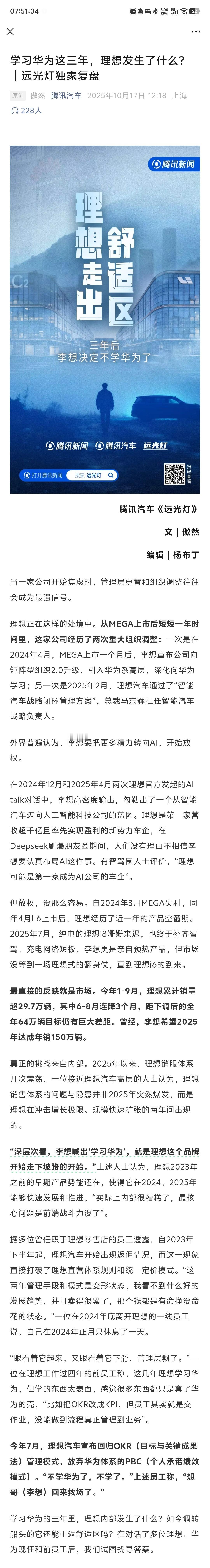 《学习华为这三年,理想发生了什么?》-理想不学华为了-理想就做自己了大v聊车