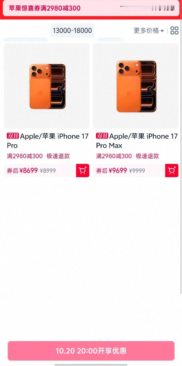 【iPhone17pro天猫官旗首次降价】果粉注意!2025 天猫双 11 开卖时间定了,10 月 20 日 20 点正式开启!这次最值得关注的是,iPhone 17 Pro 在天猫官旗迎来首次降价,双 11 期间直降 300 元,到手价 8699 元起。不用等后续补货,不用蹲不确定的活动,现在定好闹钟,到点就能按优惠价入手。刚需想换手机的,这个首次降价机会可以重点盯紧~