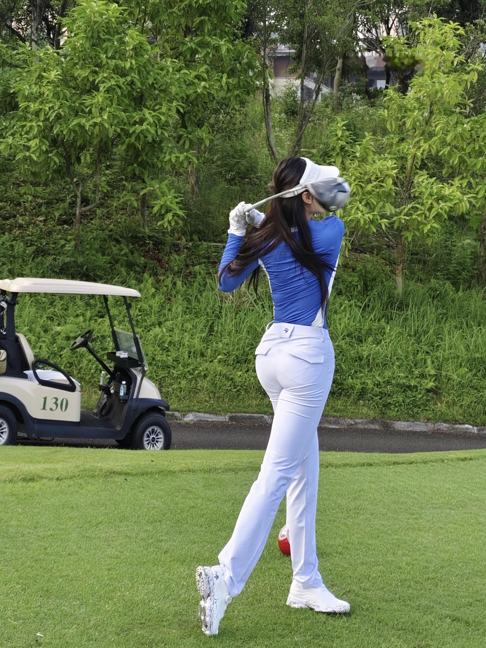 打了七十杆。高尔夫女孩 高尔夫挥杆 每天锻炼健康又快乐