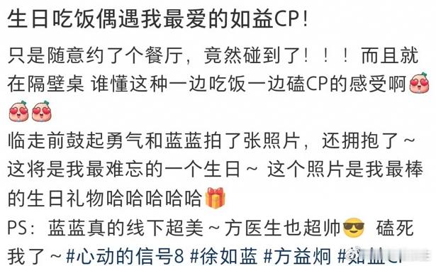 徐如蓝叫方益炯宝贝好宠心动的信号一起摘薰衣草的时光,徐如蓝温柔地对方益炯说“开闪光灯了,宝贝”,方益炯的配合就像是早已预见到的一样。两个人的互动,简直像是恋爱中的小情侣,甜蜜满满。