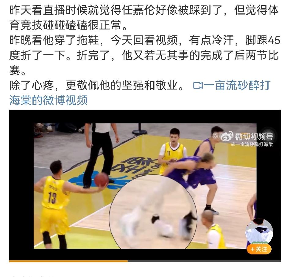 郭艾伦在综艺节目打篮球一不当心又惹事了! 别看郭艾伦性格大大咧咧嘻嘻哈哈的,但是一遇到打球就格外较真,即使是商务活动打着玩的比赛也非常认真。 打了这么多年郭艾伦都没能拿到一个MVP,在NBA组织的活动名人赛上郭艾伦砍下全场最高分,并且拿到了MVP。 却因为太过认真在打球时候踩到了男明星任嘉伦的脚,把人家的脚指甲盖踩裂了导致走路一瘸一拐,受到粉丝的热议。 之前郭艾伦和歌手周深参加综艺节目,两个人比赛撕名牌郭艾伦动作太大把小个子的周深摔了出去,这下又把任嘉伦脚踩上了,娱乐圈粉丝觉得他人高马大的应该注意自己的动作。