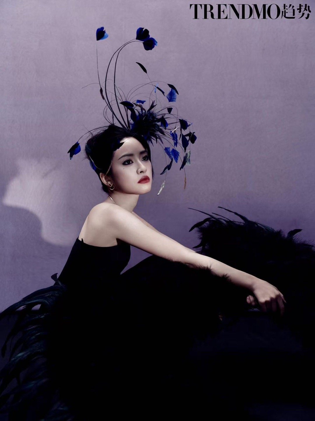 沈月首登趋势封面趋势封面选沈月太会了!羽毛与纱幔的创意搭配,独特头饰凸显艺术感