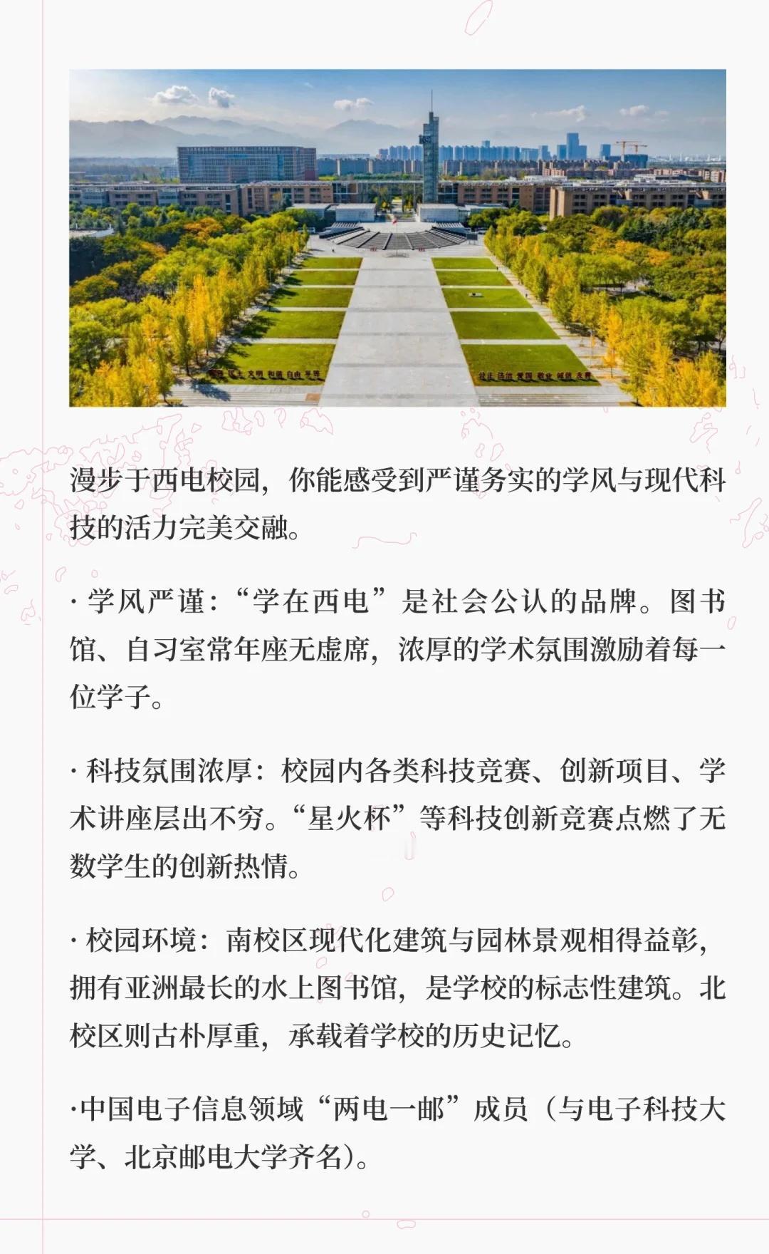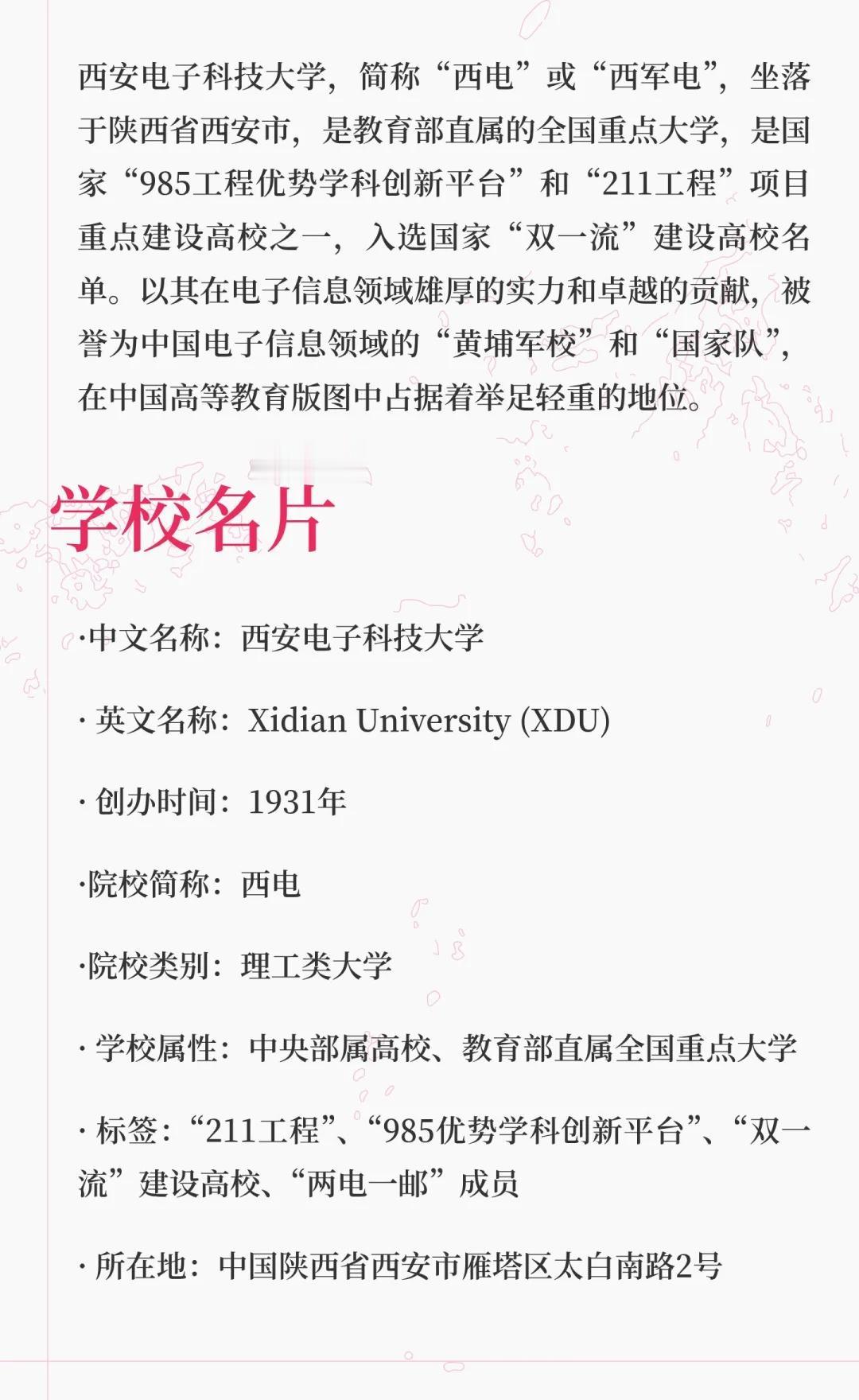 老陈说高校壹佰壹拾肆期西安电子科技大学 西安电子科技大学,简称“西电”,位于陕西西安,是教育部直属的全国重点大学,入选“双一流”建设高校。学校以电子信息学科为核心,培养了大批行业精英,为国家科技发展和国防现代化做出了重要贡献。高校 大学 院校规划 名校 电子科技大学 西安